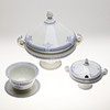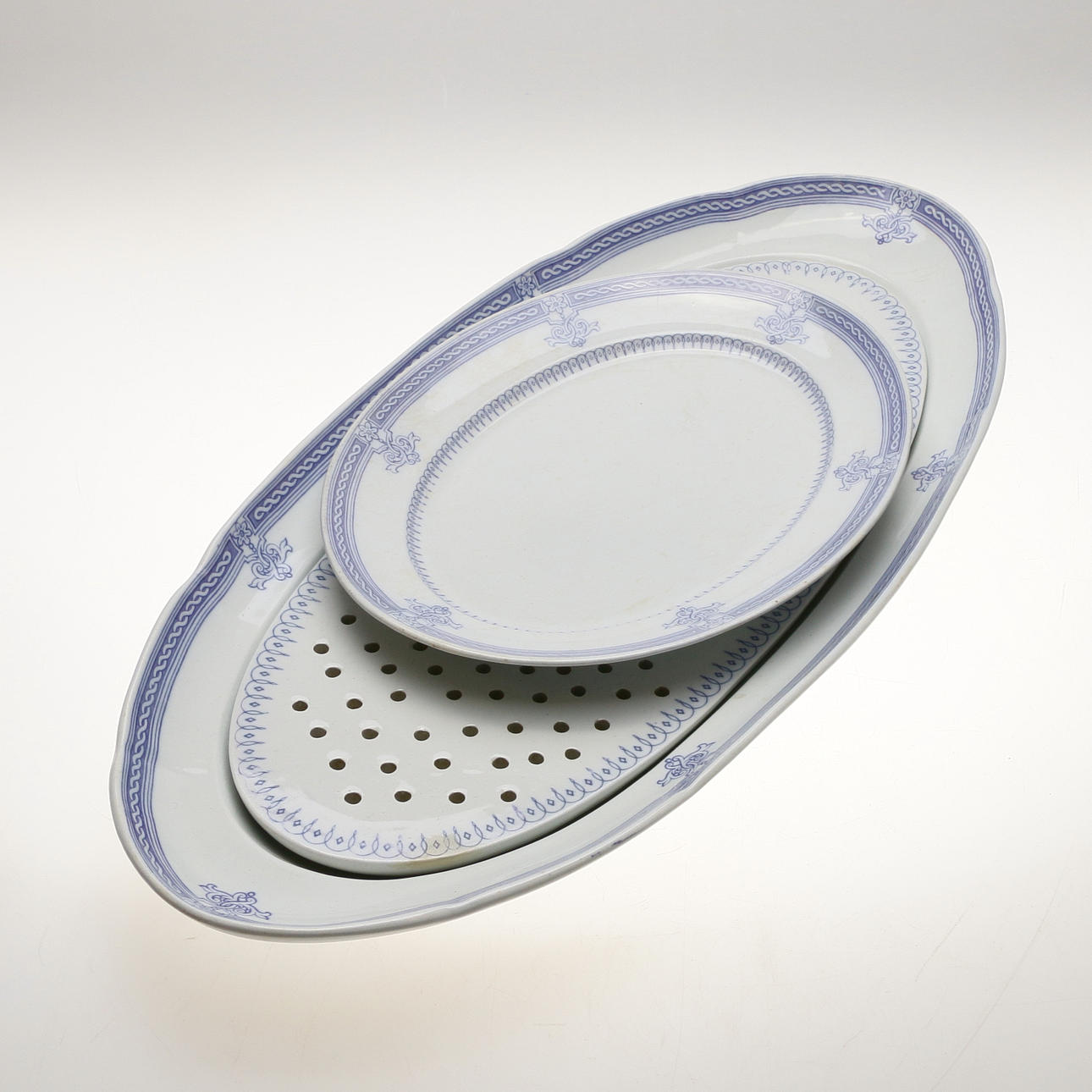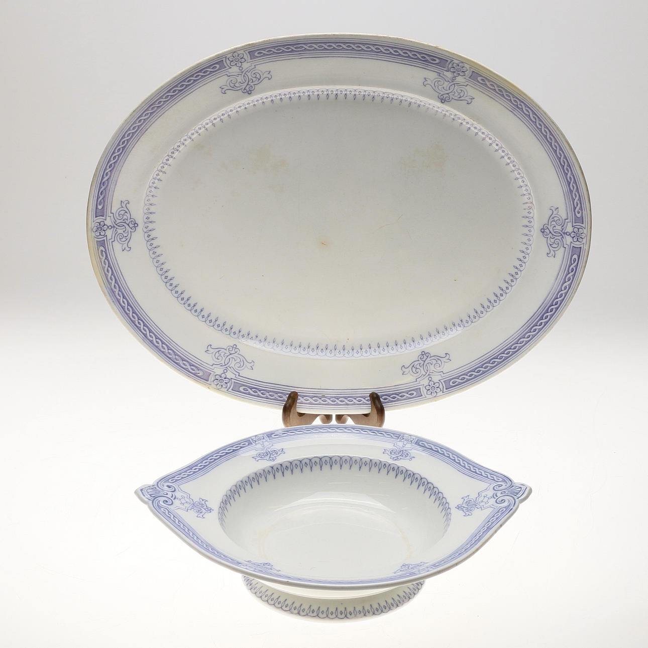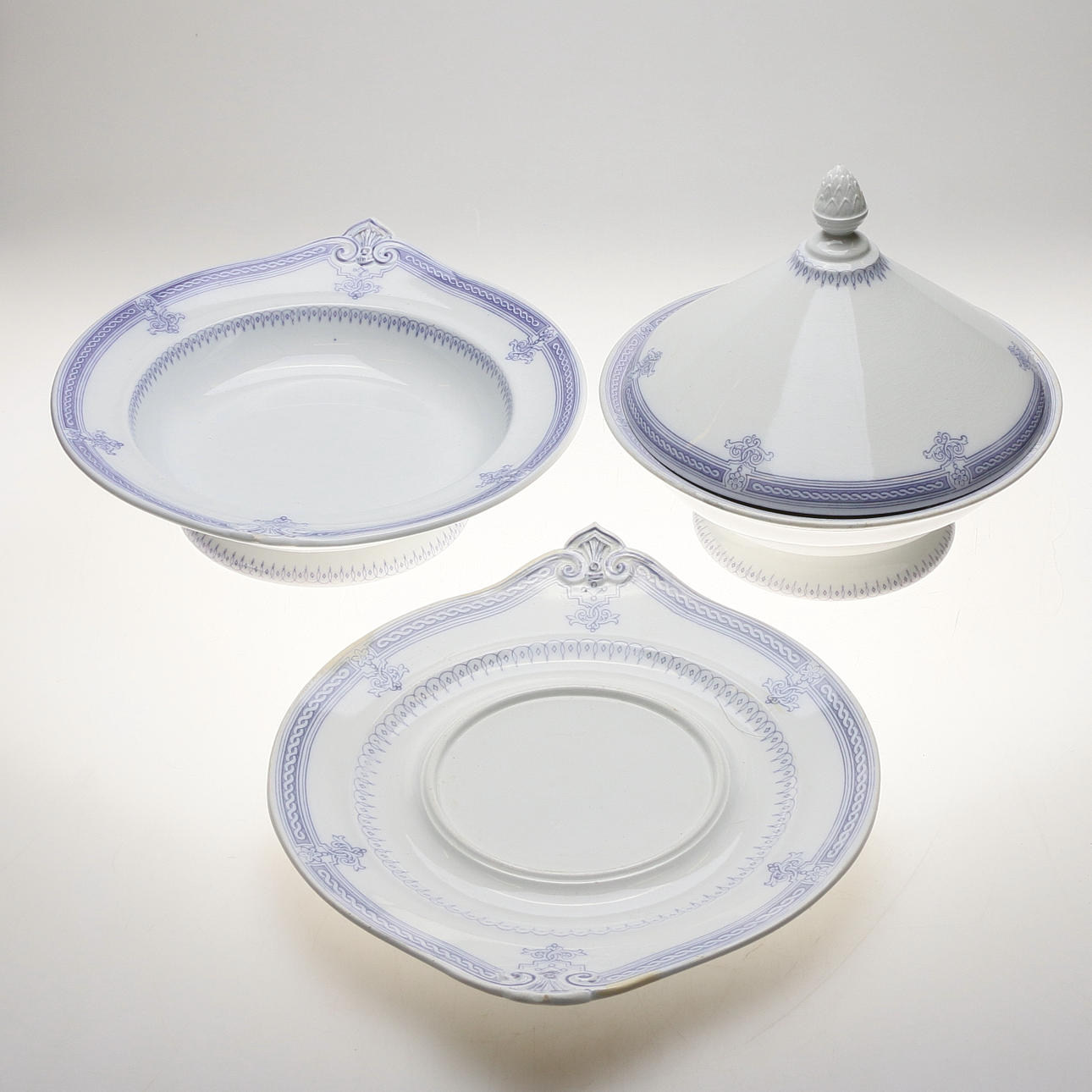 26 lautasta, 29 alkupalalautasta, 21 syvälautasta, 6 lautasta pituus n. 31 - 45 cm, 2 lautasta halkaisija n. 36 cm, 6 lautasta halkaisija n. 15 - 32 cm, kabaree 9 osaa, 1 kalalautanen, 1 keittoterriini , 1 kastikekulho ja 4 keskeneräistä osaa.
