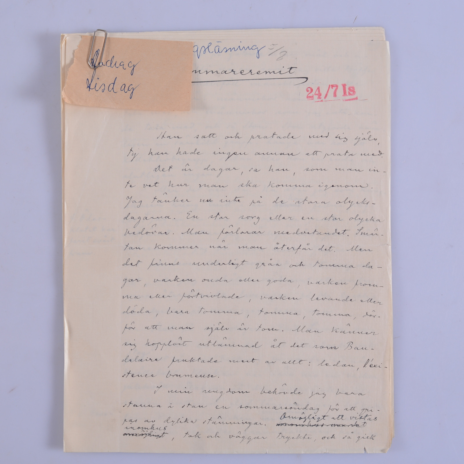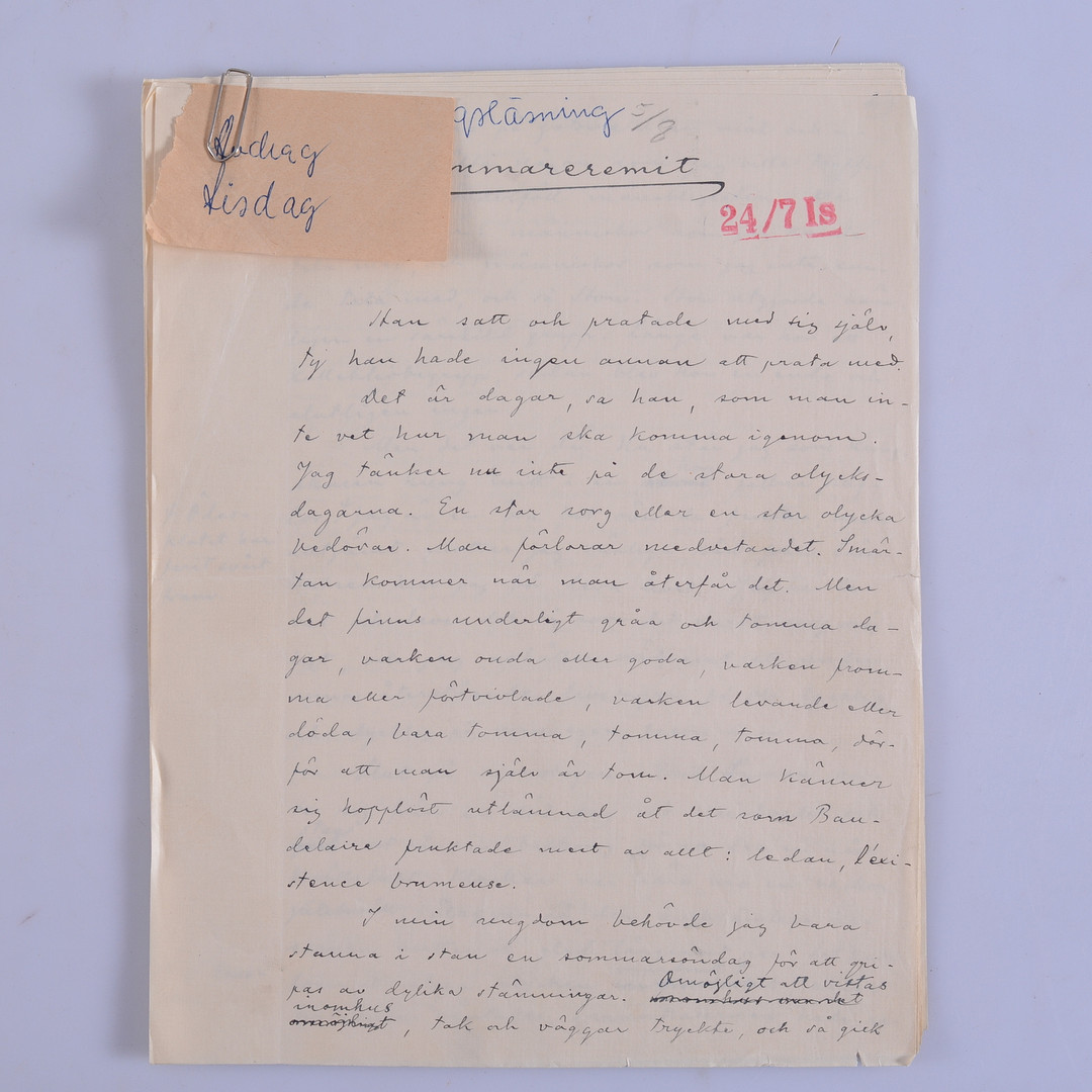 1675359. KÄSIKIRJAUS, 8 sivua, Bo Bergman.