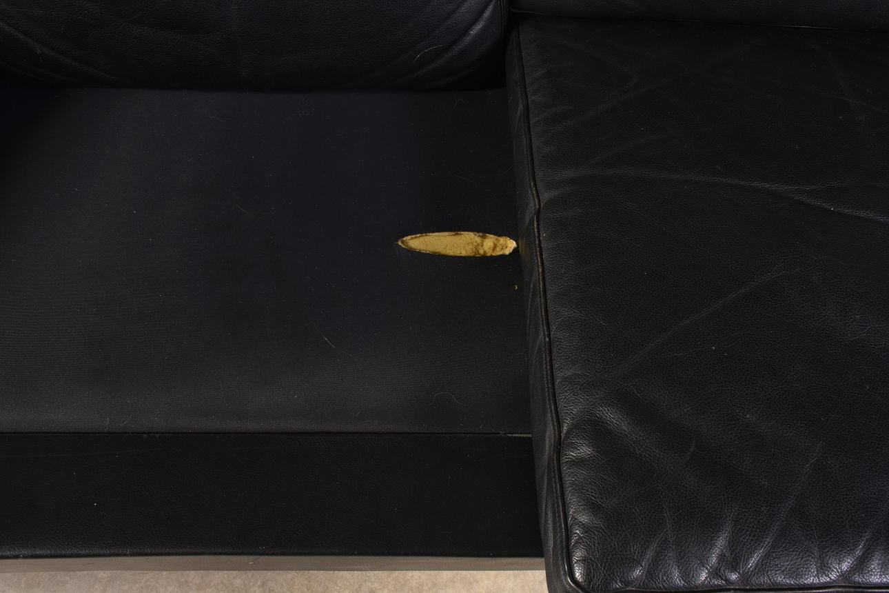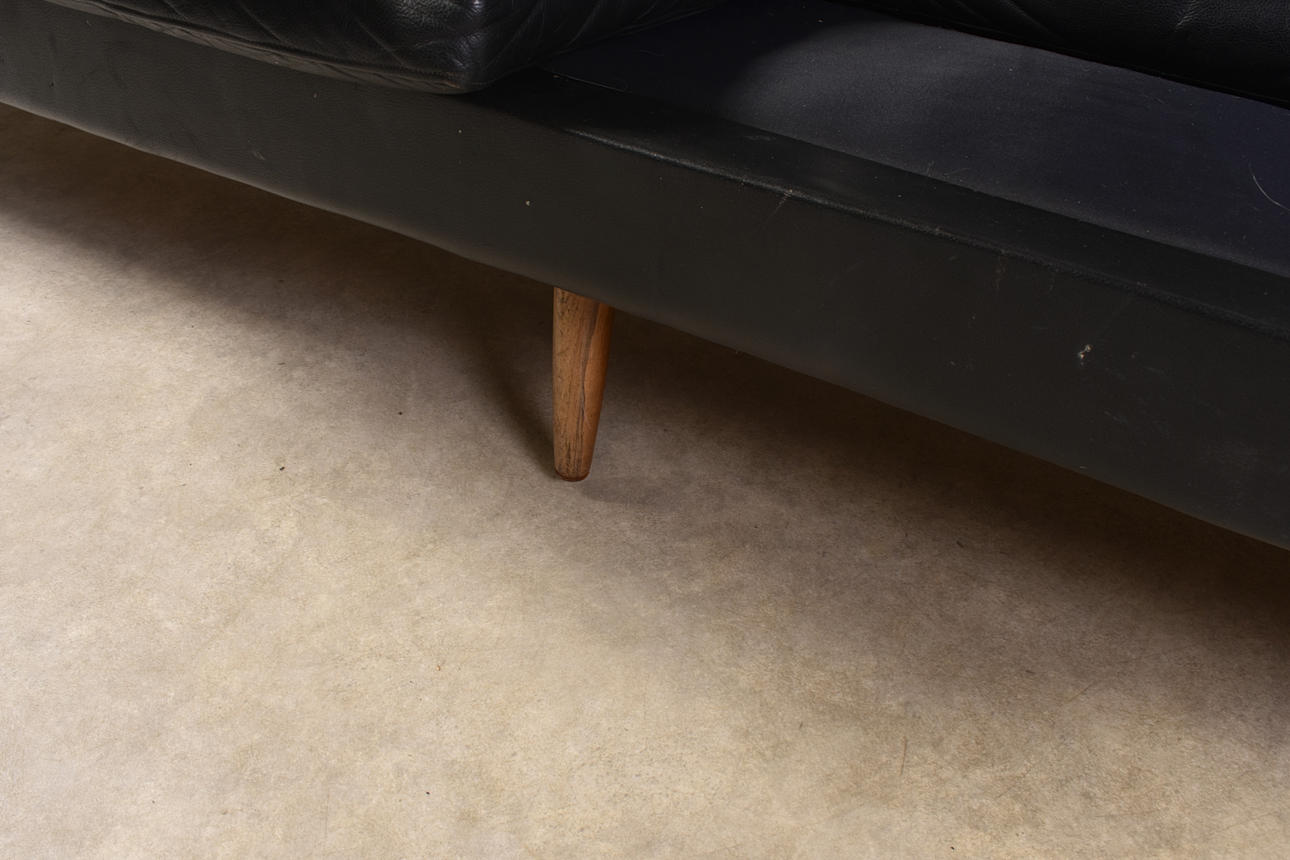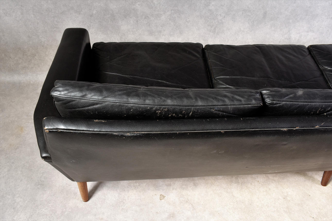Nahkasohva Tanska 1960-luku Pituus n. 245 cm Syvyys n. 69 cm Istuinkorkeus n. 40 cm Korkeus n. 70 cm.