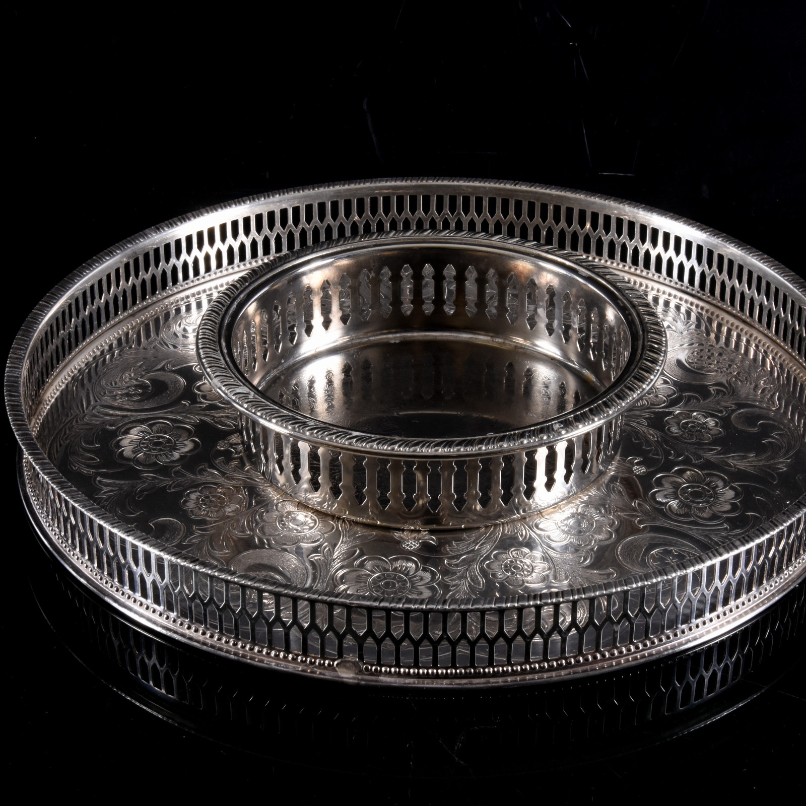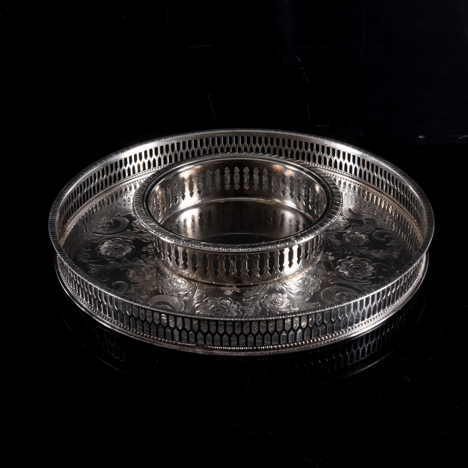 1681538. TARJOITTELUALKAAN JA LASIKKO, 2 kpl, hopeoitu, Sheffield.