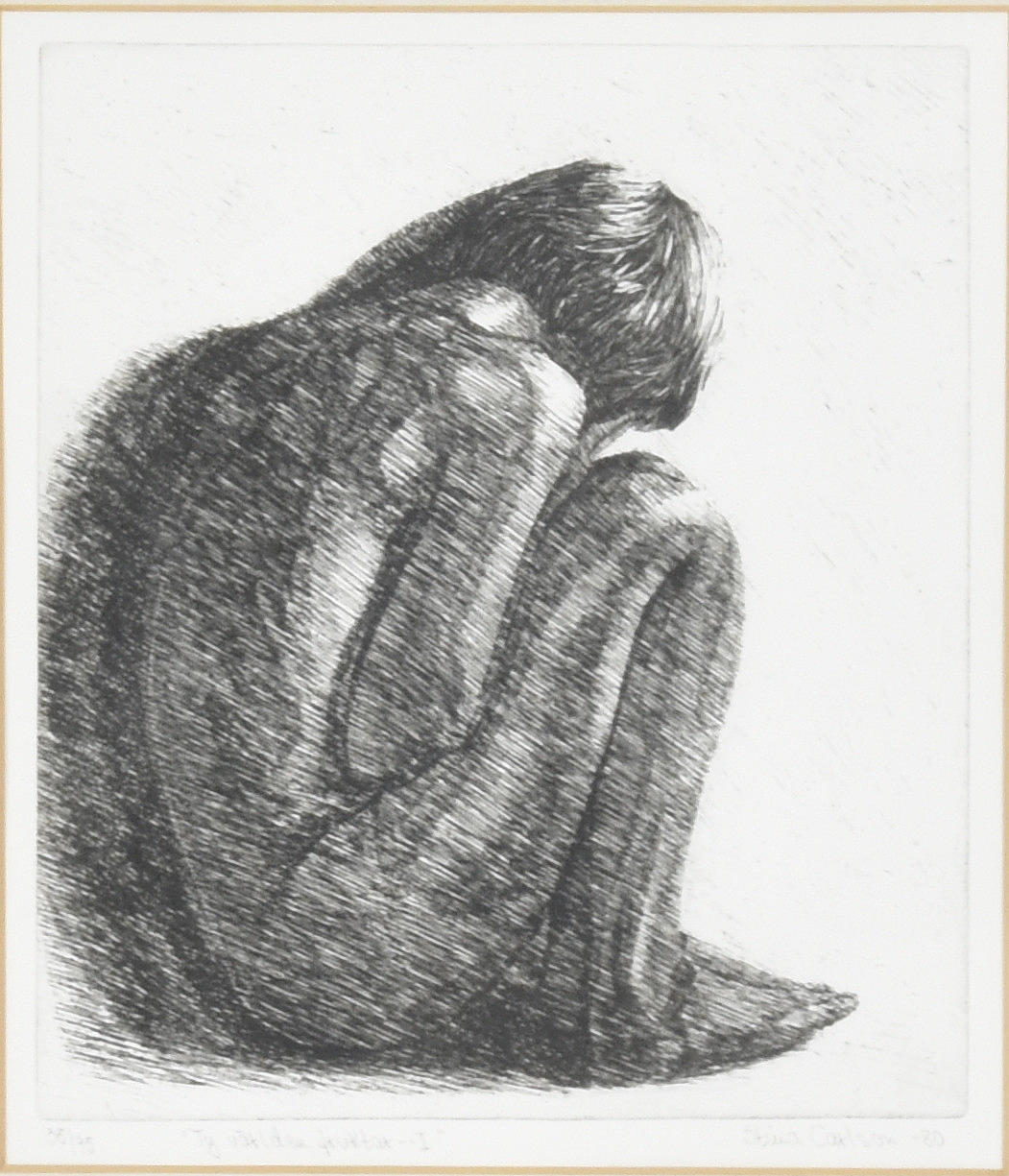 Maailman pelkojen vuoksi 1. Signeerattu ja numeroitu 56/95 ex. Päiväys -80. 27x24 cm.
