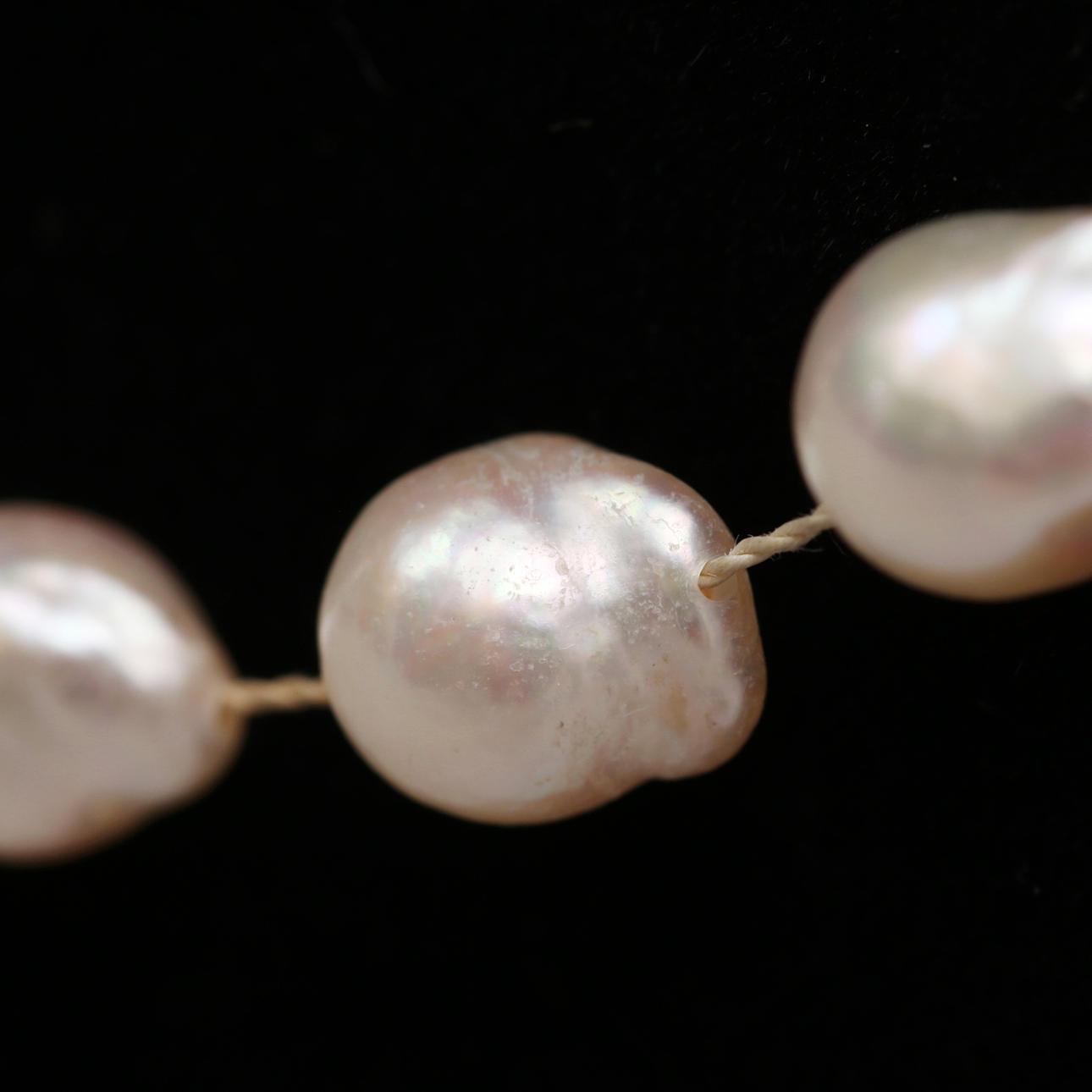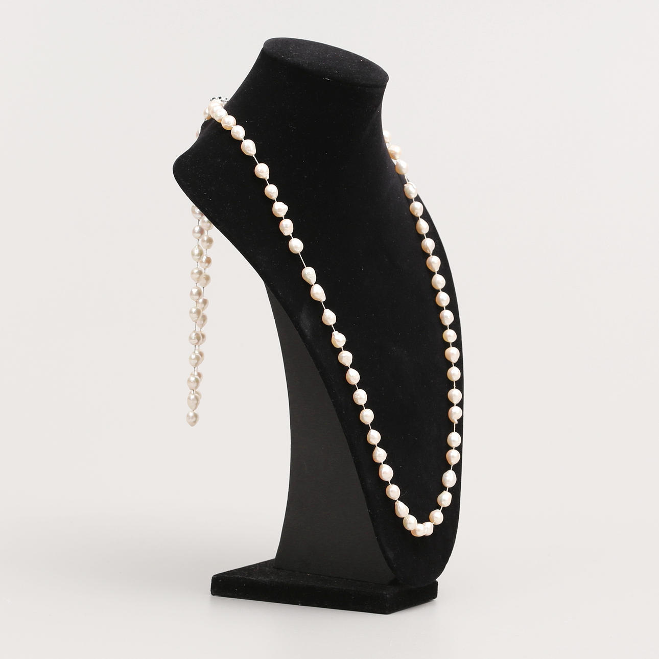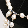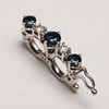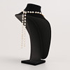 Valkokultainen lukko safiireilla ja briljanteilla, 0,10 ct. Kokonaispituus n. 105 cm. Helmien halkaisija, n. 0,7 mm.