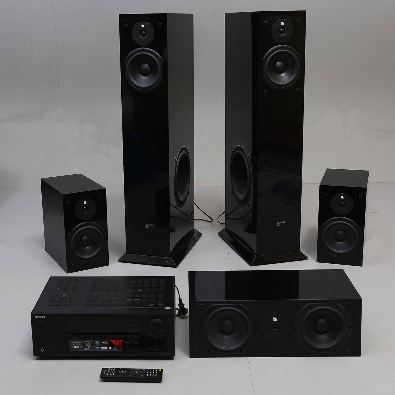 Audio Pro Black Pearl -surroundkaiutin, bassorefleksi, diskantti 3/4", keskialue 6 1/2", taajuusalue: 34-22 000 Hz, korkeus = 34, leveys = 19, syvyys = 31 cm, paino = 6,2 kg.