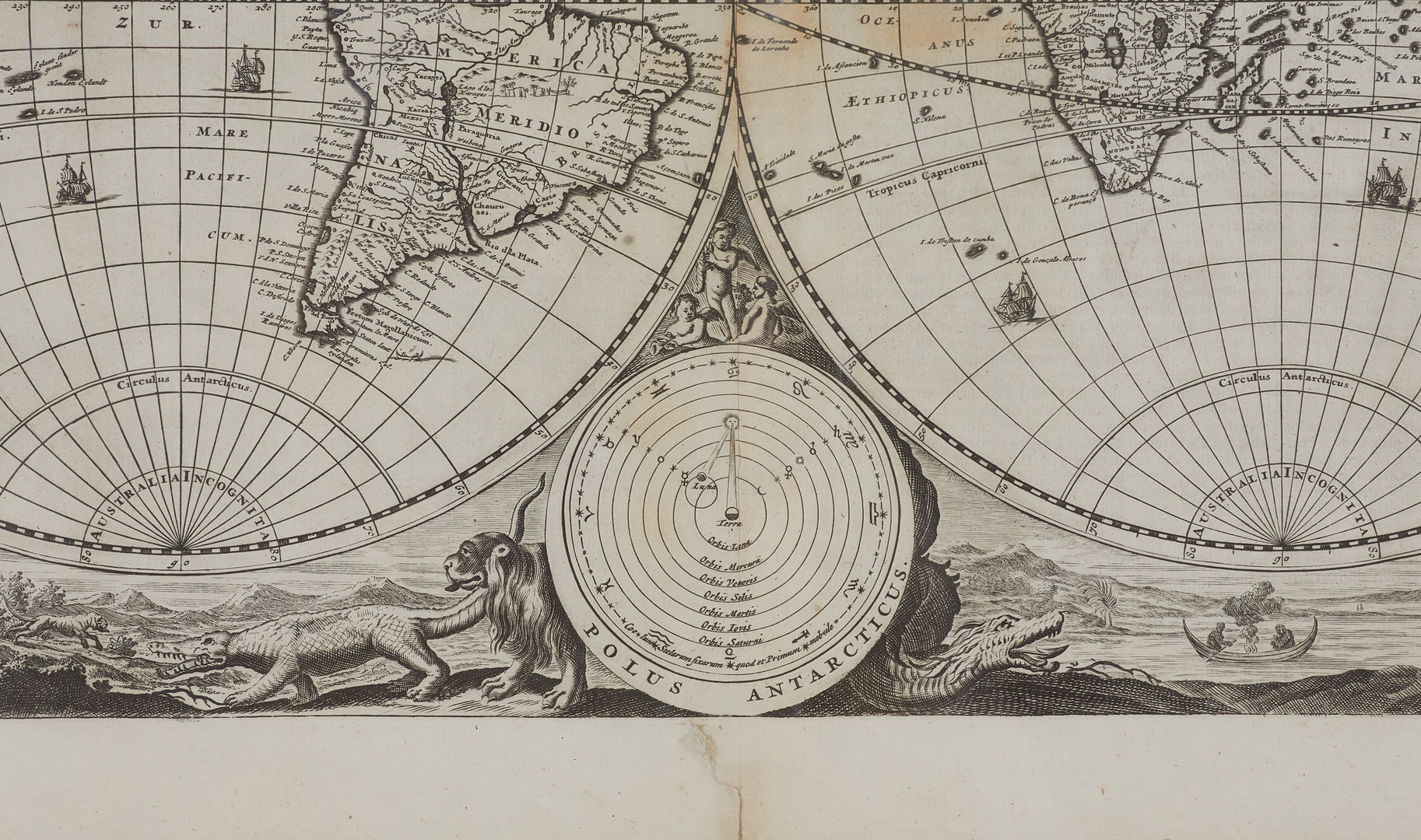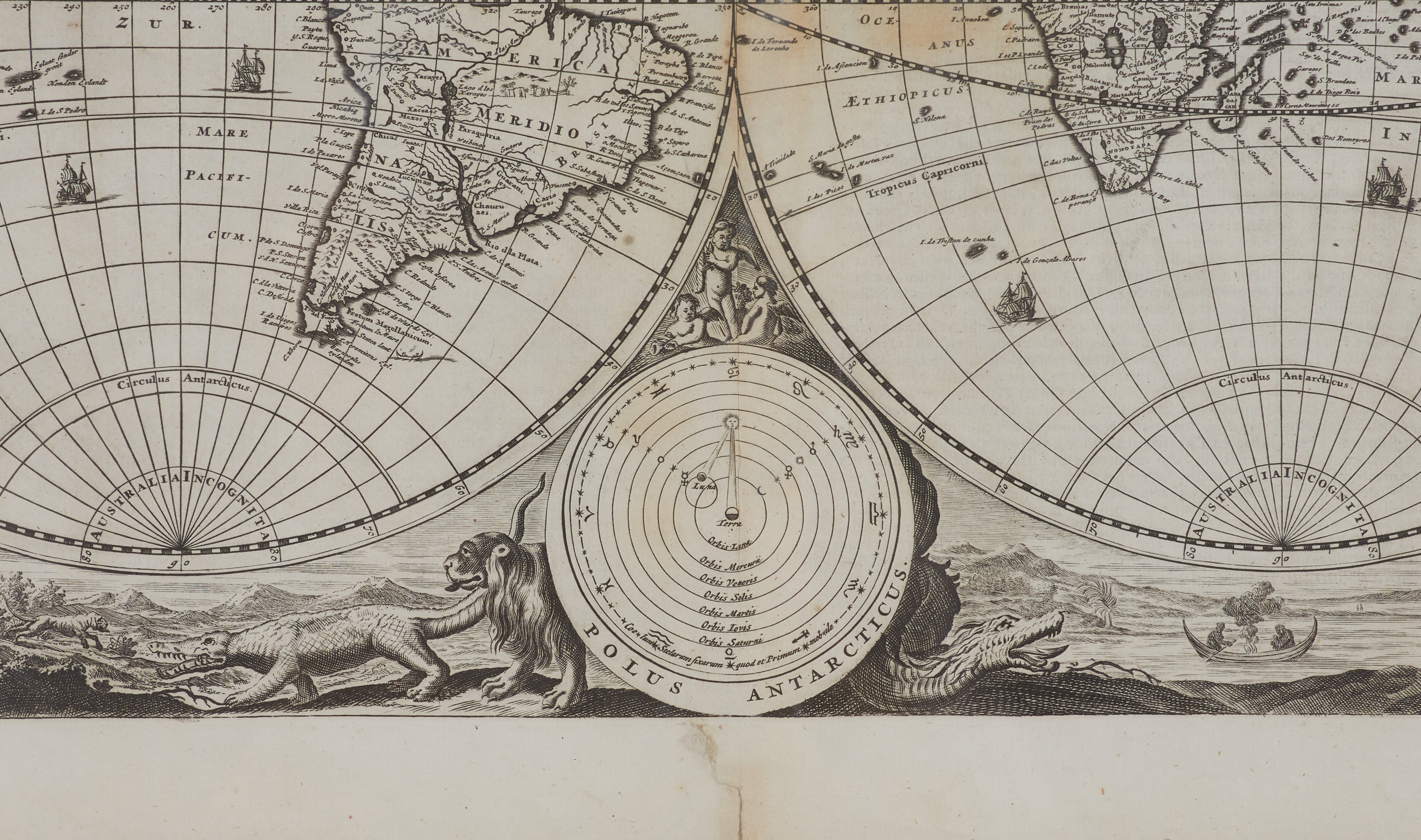 6118. 1741881. Maailmankartta kirjoittanut Stoopendaal c. 1690-1710.