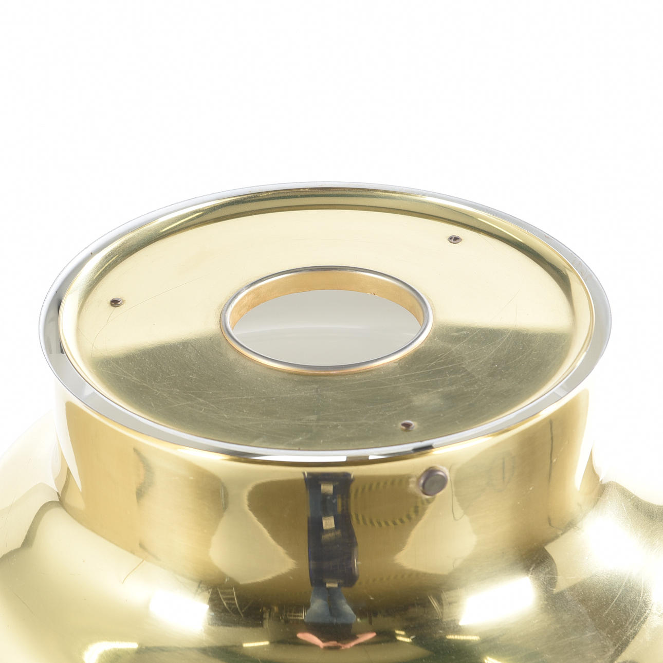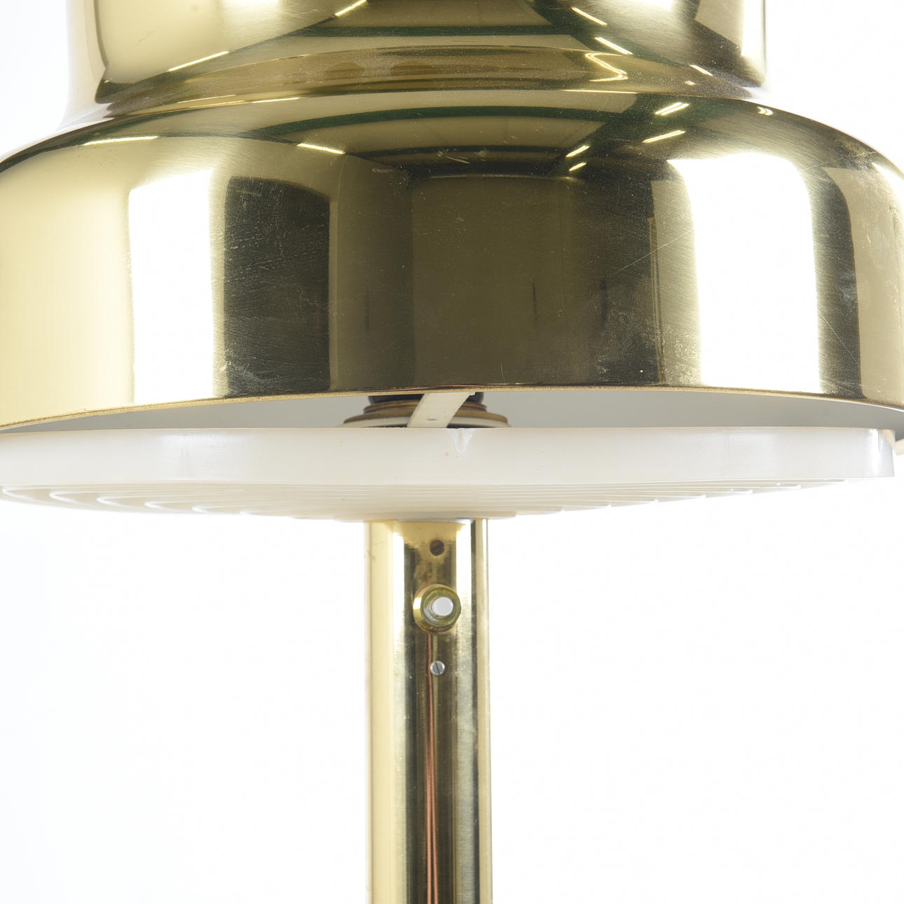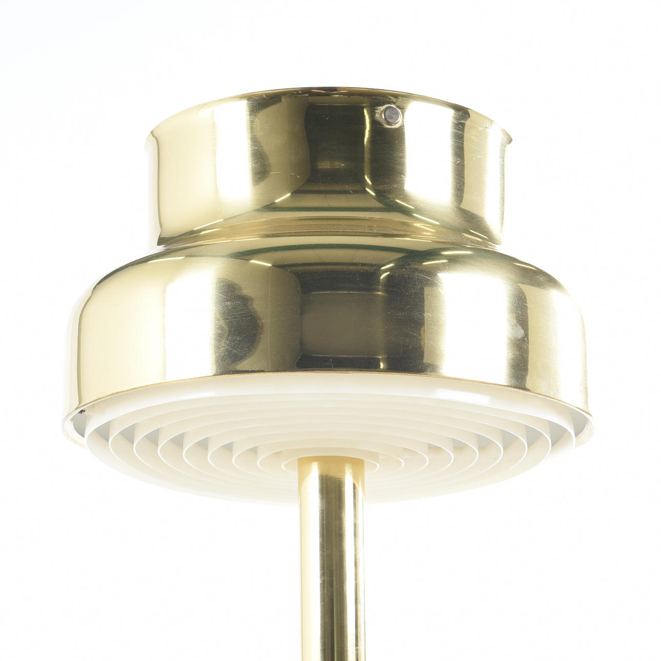 Malli 629G, messinki, ristikot muovia, valmistaja Ateljé Lyktan, korkeus n. 130 cm, halkaisija n. 42 cm.
