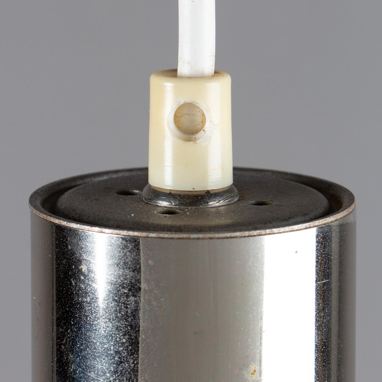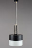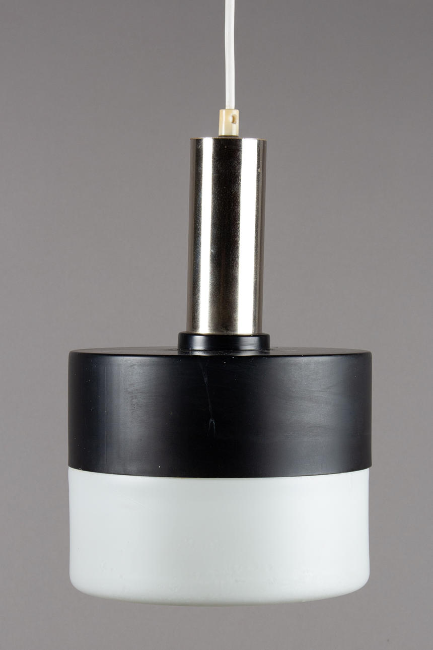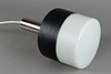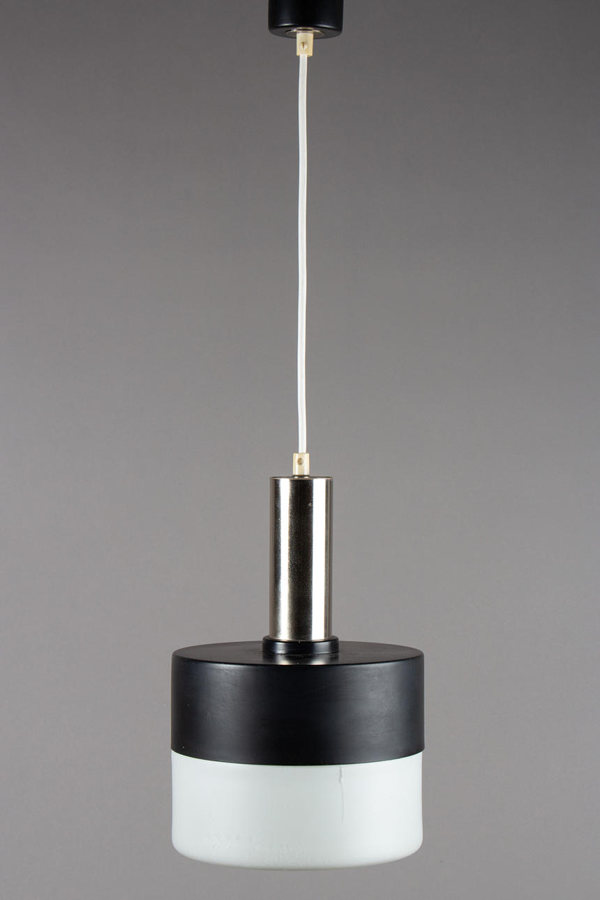 1960/1970 luvut. 1 liekki. Metalli, maalattu musta, valkoinen himmeä lasi. Korkeus 31 cm, 20 cm.