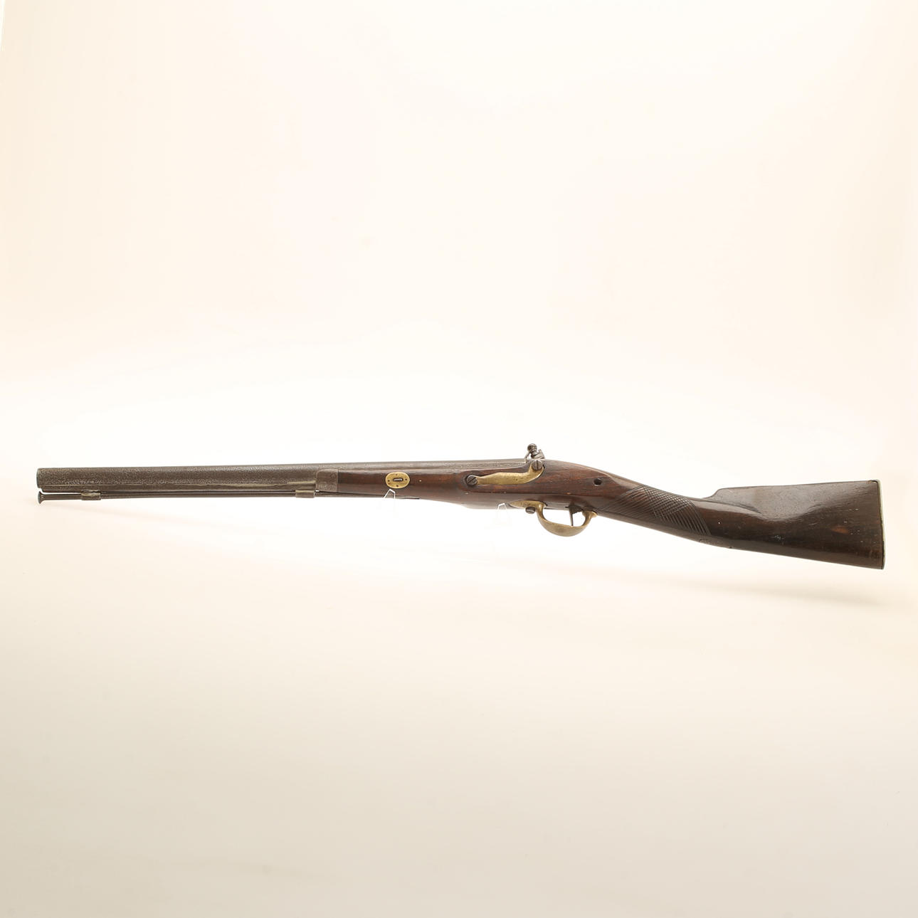 Pituus noin 87 cm. Ranskalaisista musketin osista valmistettu metsästyskivääri. Tasaisesti porattu.