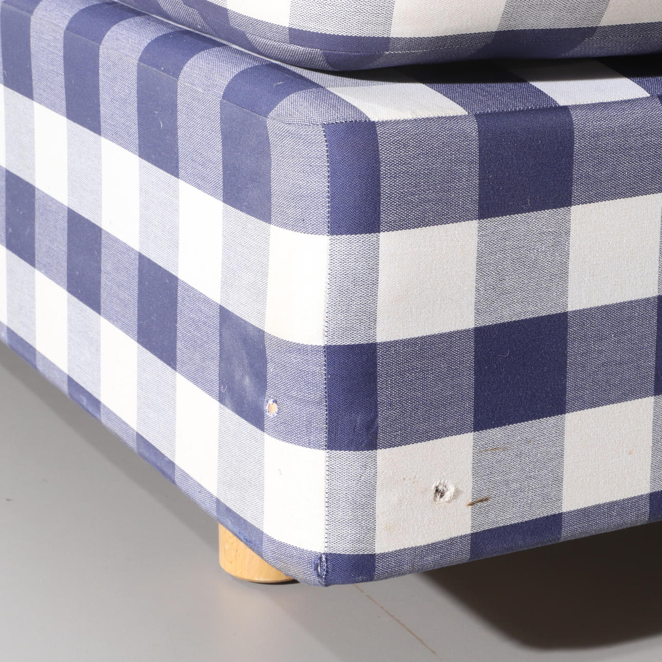 Käyttökuluma, kankaan kulumaa alanurkassa ja tahroja löytyy.