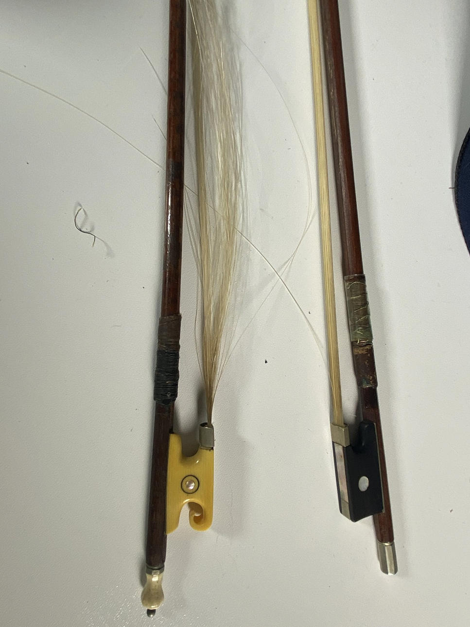 Ikään liittyvä kunto, jossa kulumisen merkkejä, kuten naarmuja, halkeamia ja puuttuvia naruja. Viulun jousesta puuttuvat kielet.