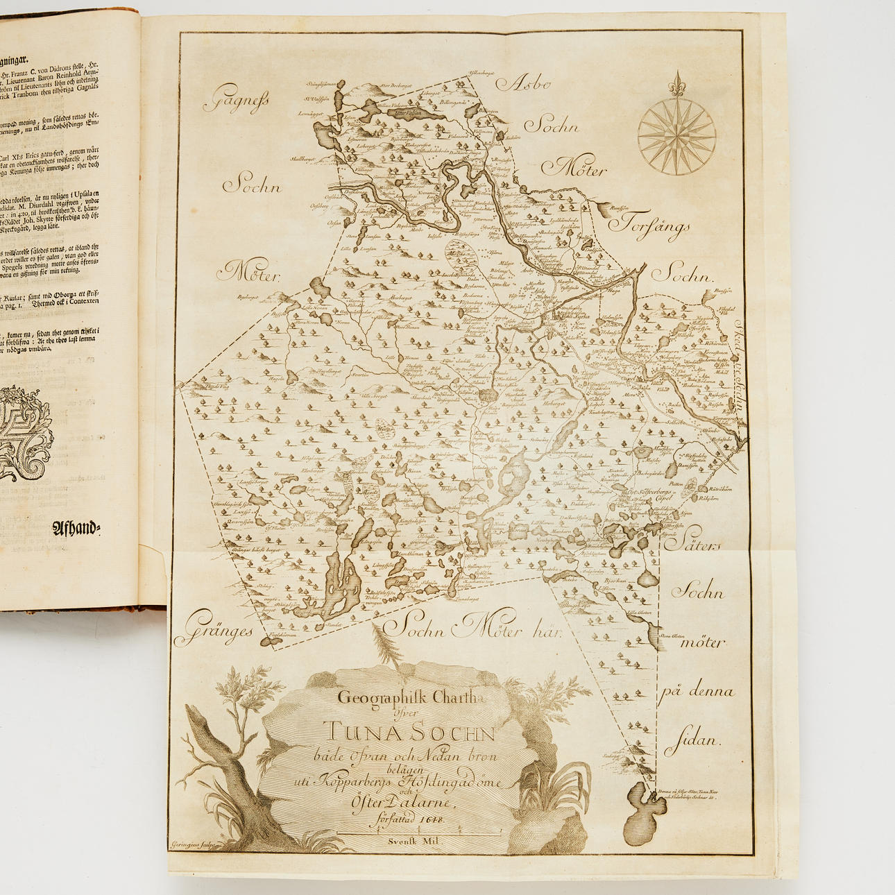 SAHLSTEDT, MAGNUS ABRAHAM. Stora tonnikala Dahlomissa ja Bergomin muistooikeudessa. Se on: Yksityiskohtainen kuvaus ja tiedot paikasta ja kristillisestä seurakunnasta, jonka nimi on Stora Tuna ja joka sijaitsee Öster-Dahlin vuoristossa; kaikissa tärkeimmissä muistomerkeissä ja muistomerkeissä, jotka koskevat nimiä ja sanajärjestystä, erottavia huoneita ja paikkoja, fyysisiä asioita ja henkilöitä sekä heidän tekojaan, saavutuksiaan, yrityksiään, tekojaan sekä merkittäviä tapahtumia, jotka joko tai heidän asukkansa kuulua tietää, selvittää ja hiihtäjä koodata. Joka yleensä, kuten erityisesti, tiettyjen osien, jakojen, jakojen ja kappaleiden tai erityisten jakojen alla, mahdollisimman lyhyinä ja selkeinä, on tehty sana; niin myös kaikkien Samasten, uskollisesti, kaikella huolellisuudella kerättynä sekä suulliset että kirjalliset todistukset dokumentoitu ja perusteltu. Kaikki loppuun asti, että isänmaan maassa, laajalti tunnettu ja laajalti rakastettu maaseurakunta tulevaisuuden unohduksen pimeydestä vapauttaa, ja ihanaksi muistoksi vanhat muinaiset, edistyä; sitten, seurakunnan kristittynä hiordina, jonkin aikaa, hiertanin tervehdyksessä, niin myös hiordin siepattu, hyvälle juomalle ja hurskaalle, ätniutit, Magnus Abr. Sahlstedt, probst ja kyrcko-herde thersamastädes. Tukholma, Lorentz Ludewig Grefing, 1743.