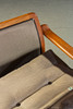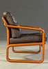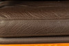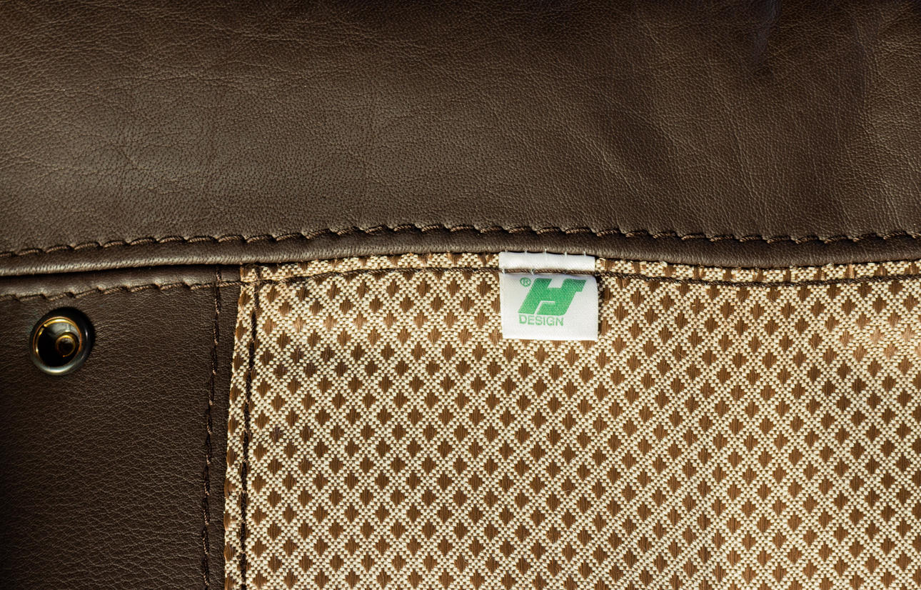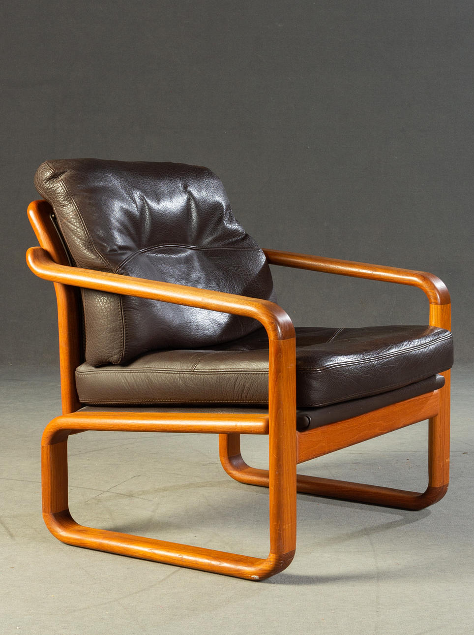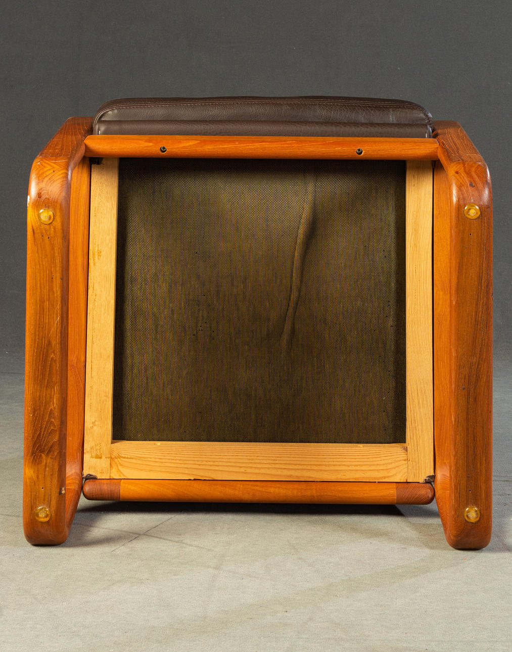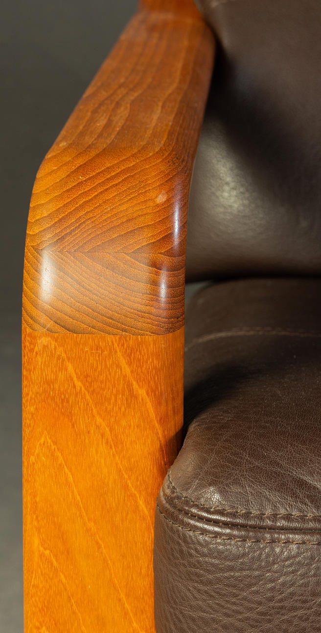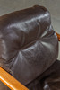 Massiivinen tiikki ja tummanruskea puhvelinnahka. KxLxS: 84x194/73x72cm.