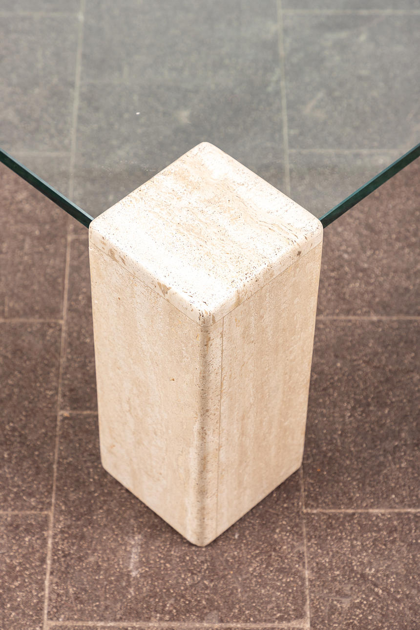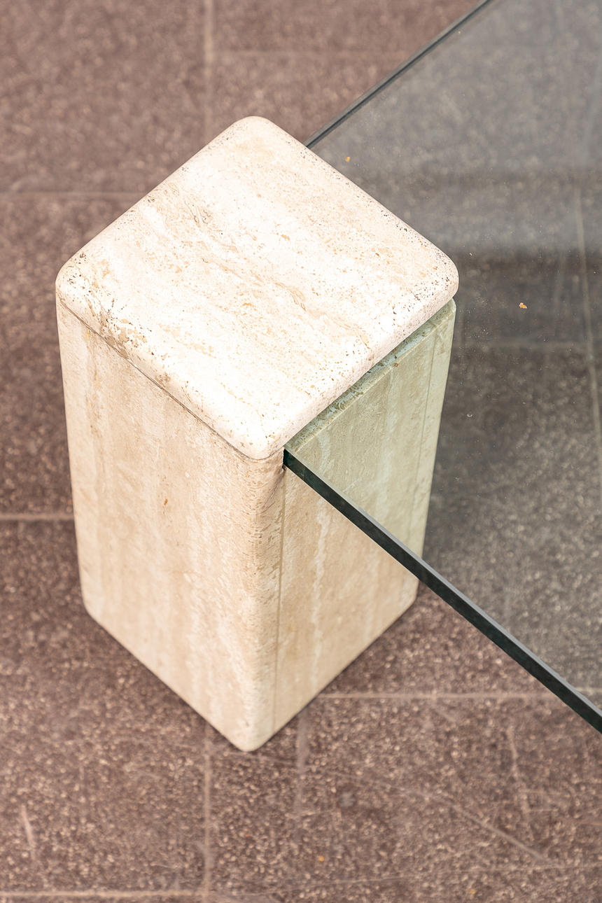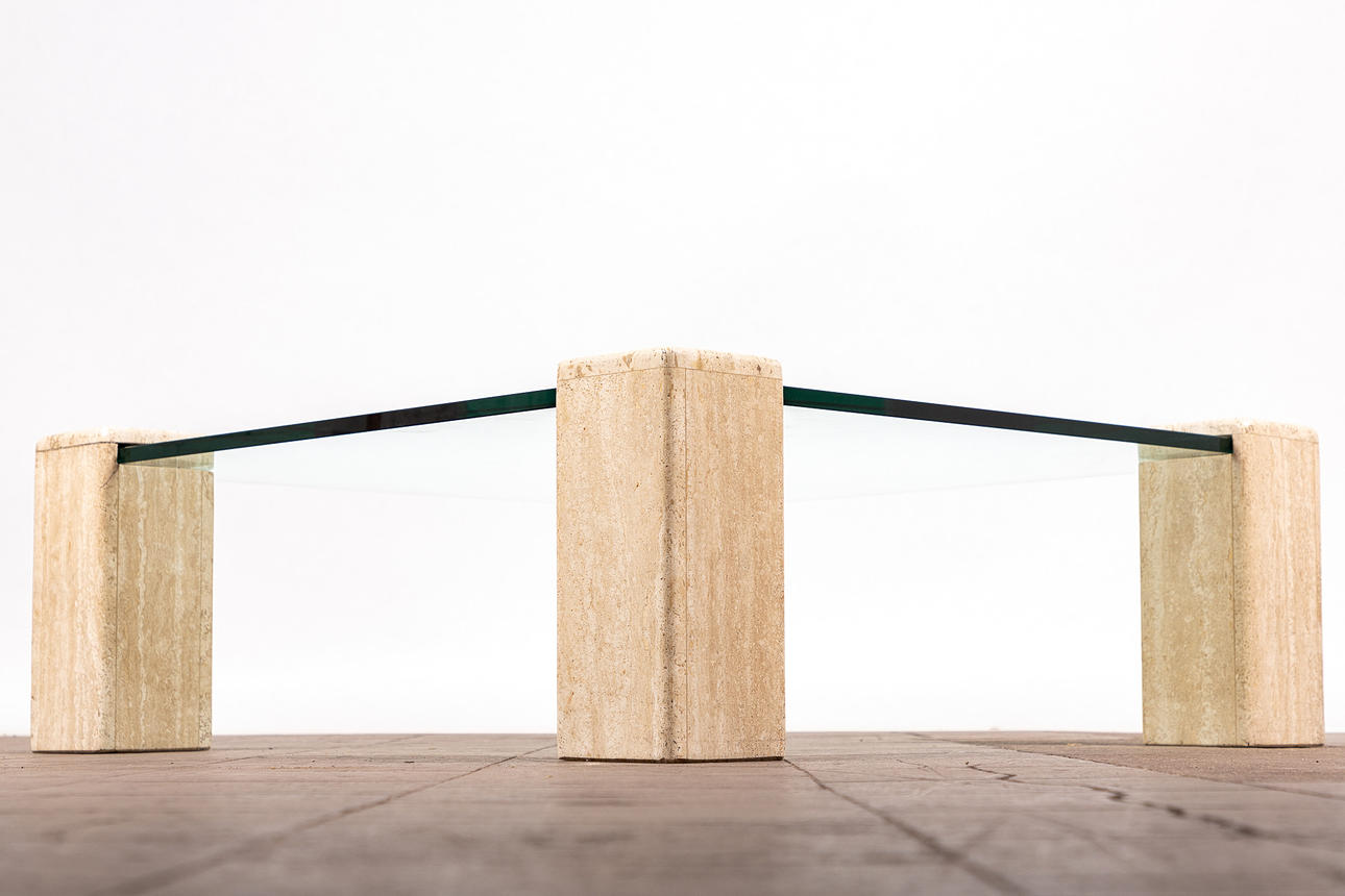 1786935. Sohvapöytä / lasipöytä, travertiini, lasi.