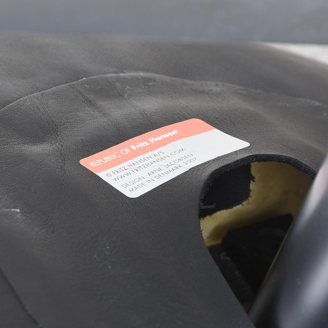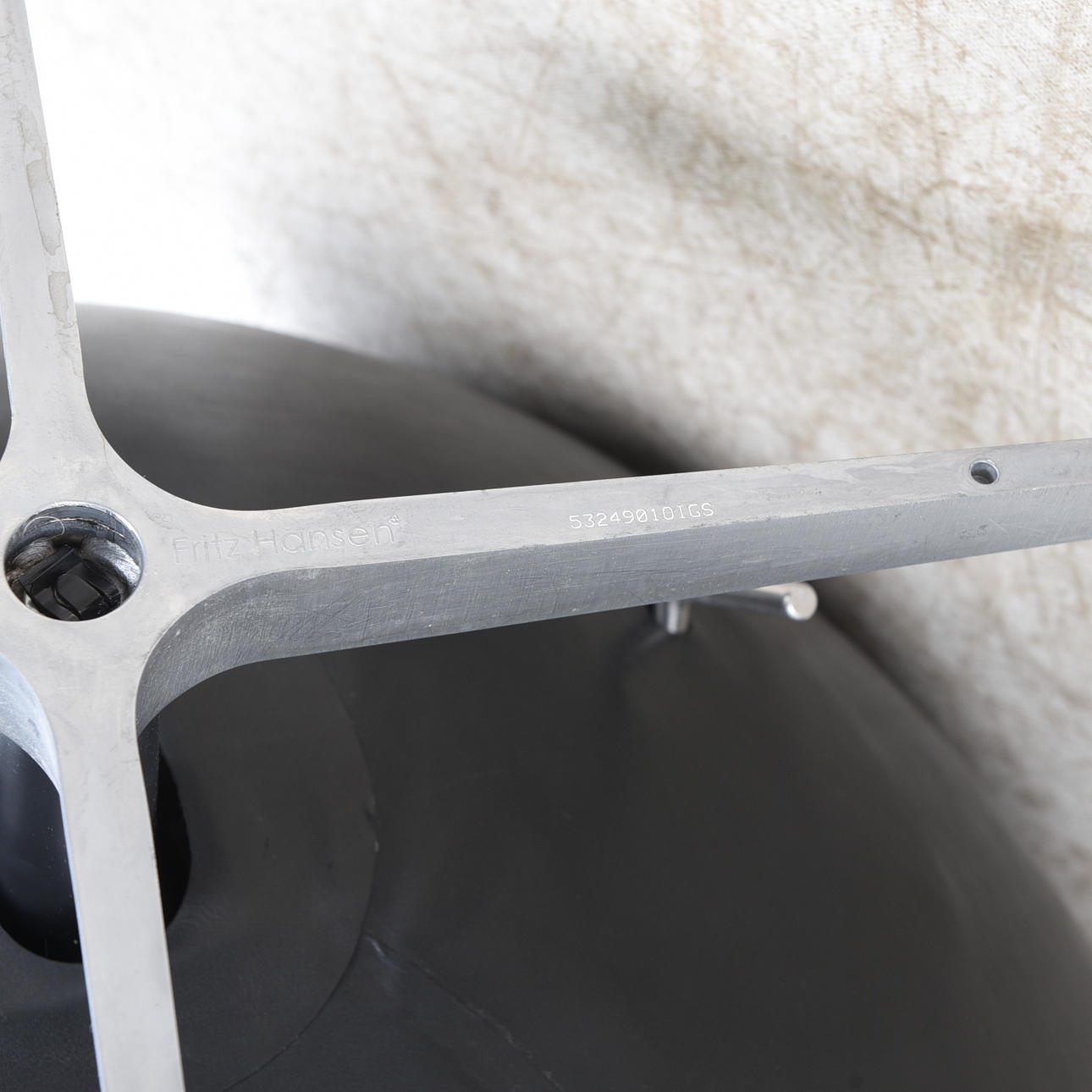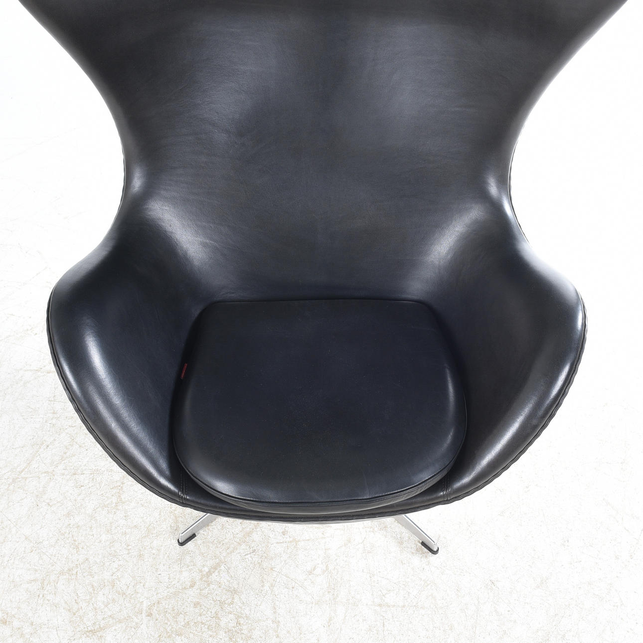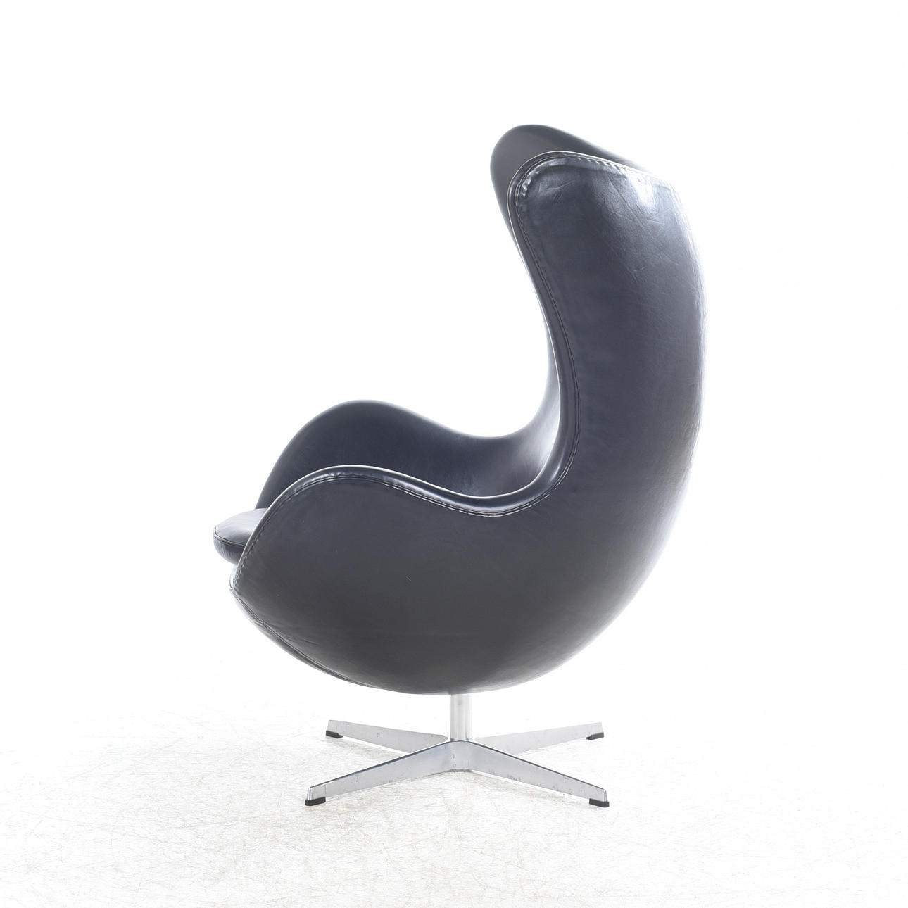 Fritz Hansen, Tanska, suunniteltu vuonna 1958. Runko verhoilulla Elegancea, kromiparkittua ja kasviparkittua nahkaa. Alumiininen nelivaiheinen siima, pyöritys- ja keinutoiminto. Korkeus n. 107, istuinkorkeus 37 cm. Sisältää varmenteen/henkilökortin.