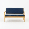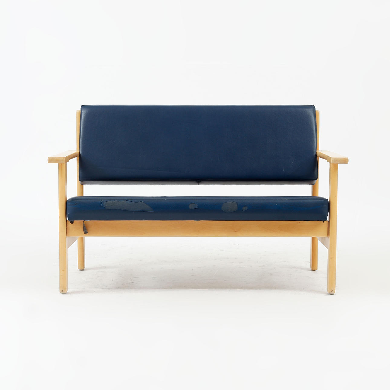 Pyökkirunko, sininen pitsiverhoilu, pituus n. 120, leveys n. 72, istuinkorkeus n. 42 cm.
