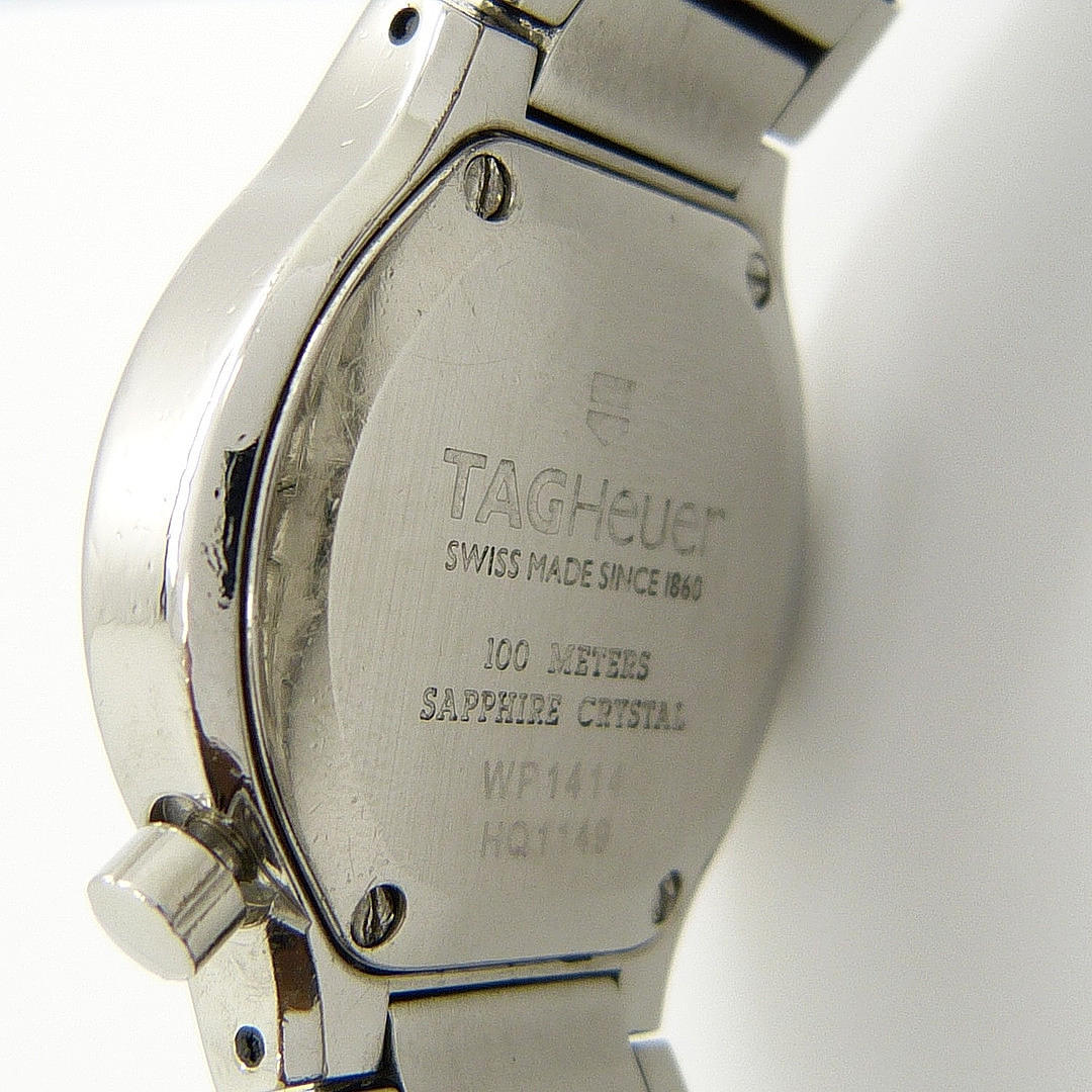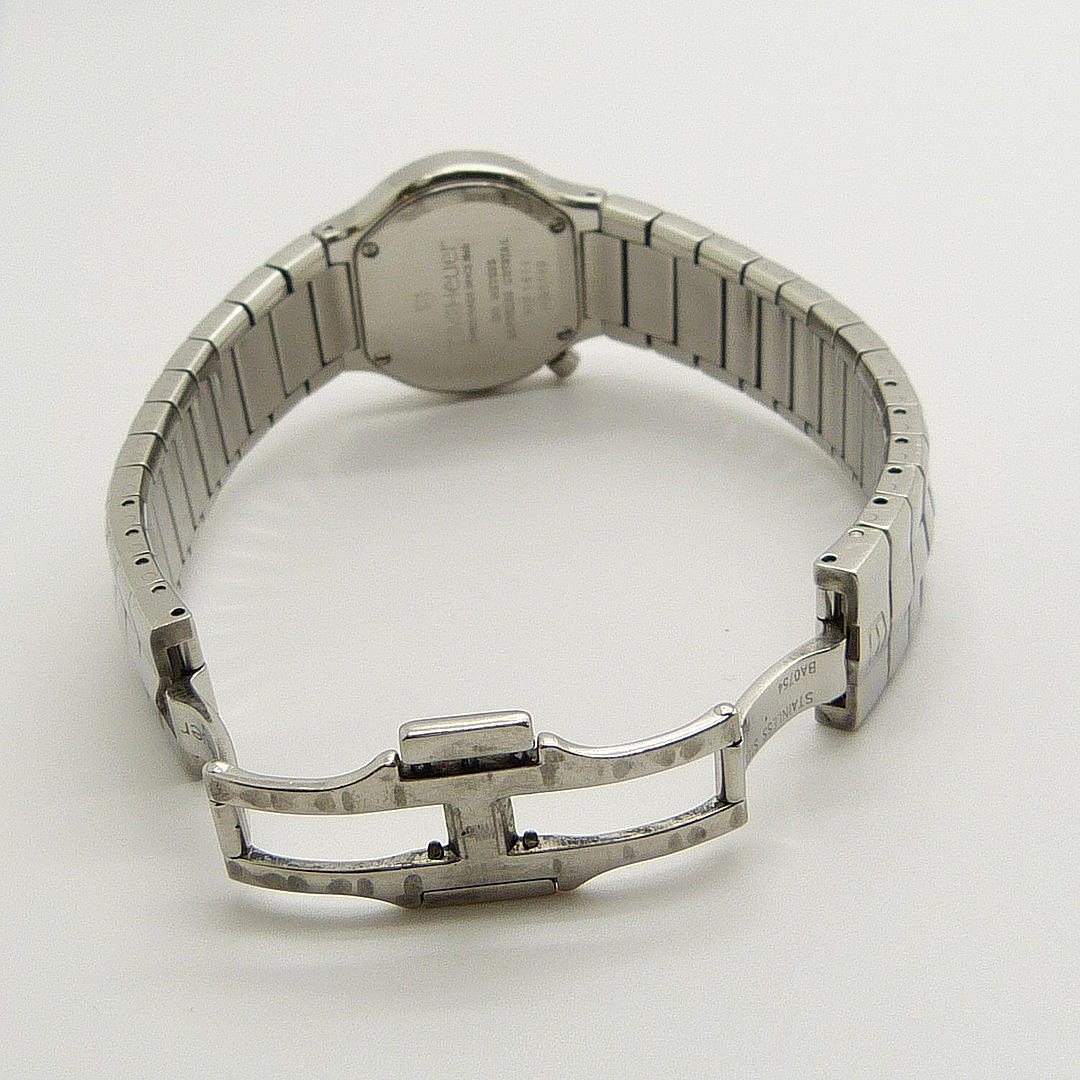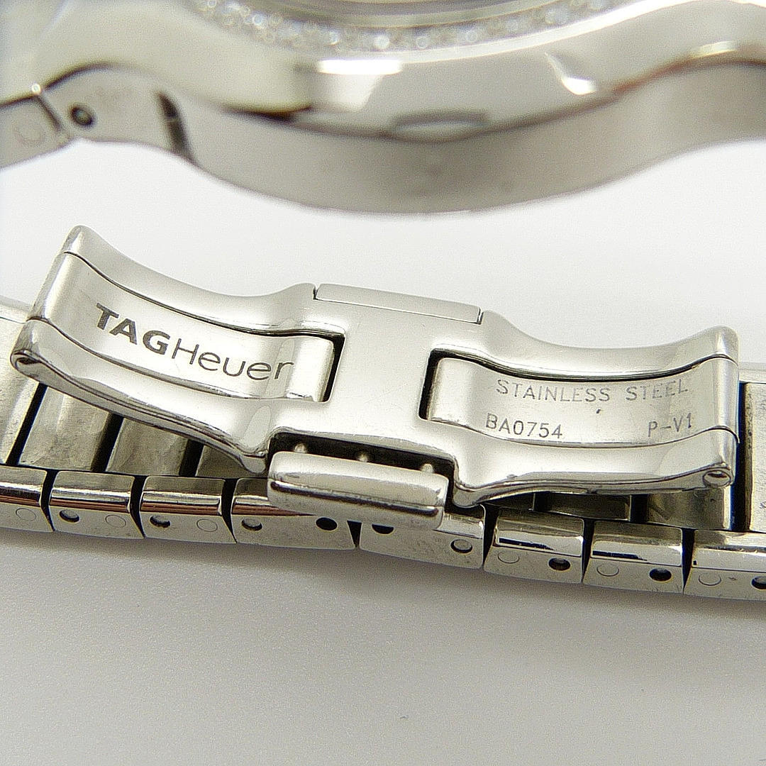 Tärkeimmät ominaisuudet: • Tuotemerkki: Tag Heuer • Valikoima: Alter Ego • Arvioitu valmistusvuosi: 2003 • Valmistusmaa: Sveitsi • Sukupuoli: Naiset • Liikkeet: kvartsi • Timantit: pyöreä, briljanttihiottu, 0,50 karaattia: noin, määrä: 32 • Timanttien väri: FG n. • Timanttien kirkkaus: VS - erinomainen SI, n. • Mallinumero: WP1414 HQ1149 • Vedenkestävyys: 100 metriä • Etuosa: Helmiäisvalkoinen • Kellotaulu: Ei numeroita. Tunti- ja minuuttiosoittimet • Näyttö: Analoginen, minimalistinen • Kotelon materiaali: Ruostumaton teräs, timanttikehystetty kehys • Rannekorun materiaali: ruostumaton teräs • Kotelon muoto: Pyöreä • Kotelon halkaisija: noin 25 mm • Lukko: Kaksinkertainen käännös • Leimattu lukkoon : BA0754 P-V1 • Korvakkeen leveys: noin 9 mm • Rannekorun (hihna) tyyli: kalanruoto, kohotettu selkäranka Kokonaispaino: 71,7 grammaa.