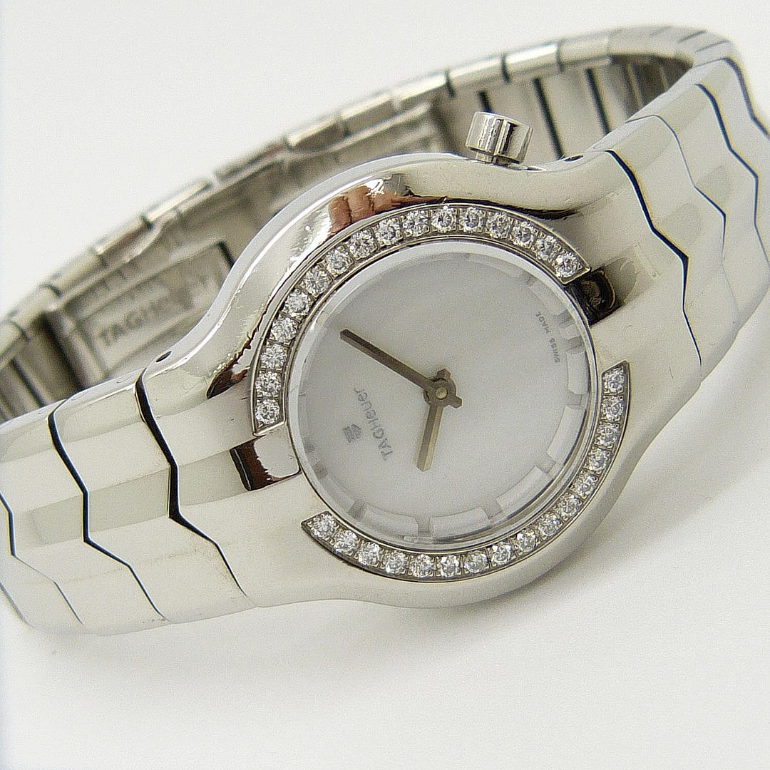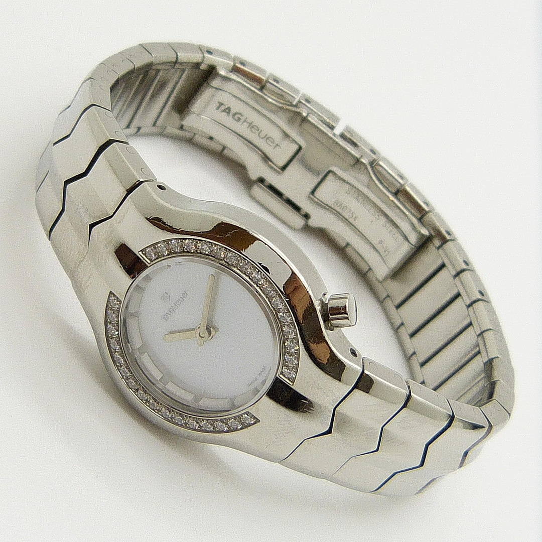 Naisten sveitsiläinen TAG Heuer -kellosetti, jossa on noin 0,50 ct pyöreähiottuja timantteja ja ruostumattomasta teräksestä valmistettu rannekoru.