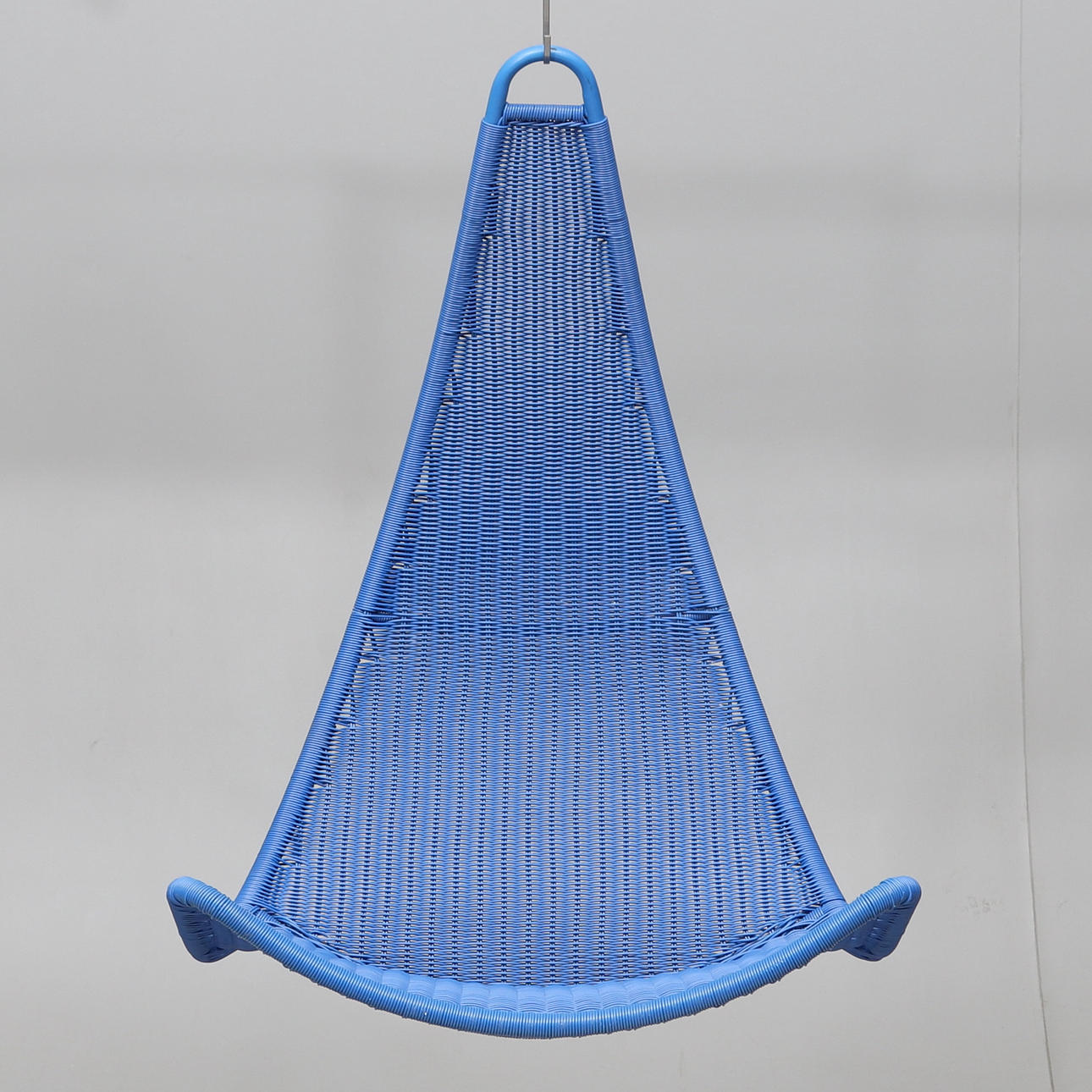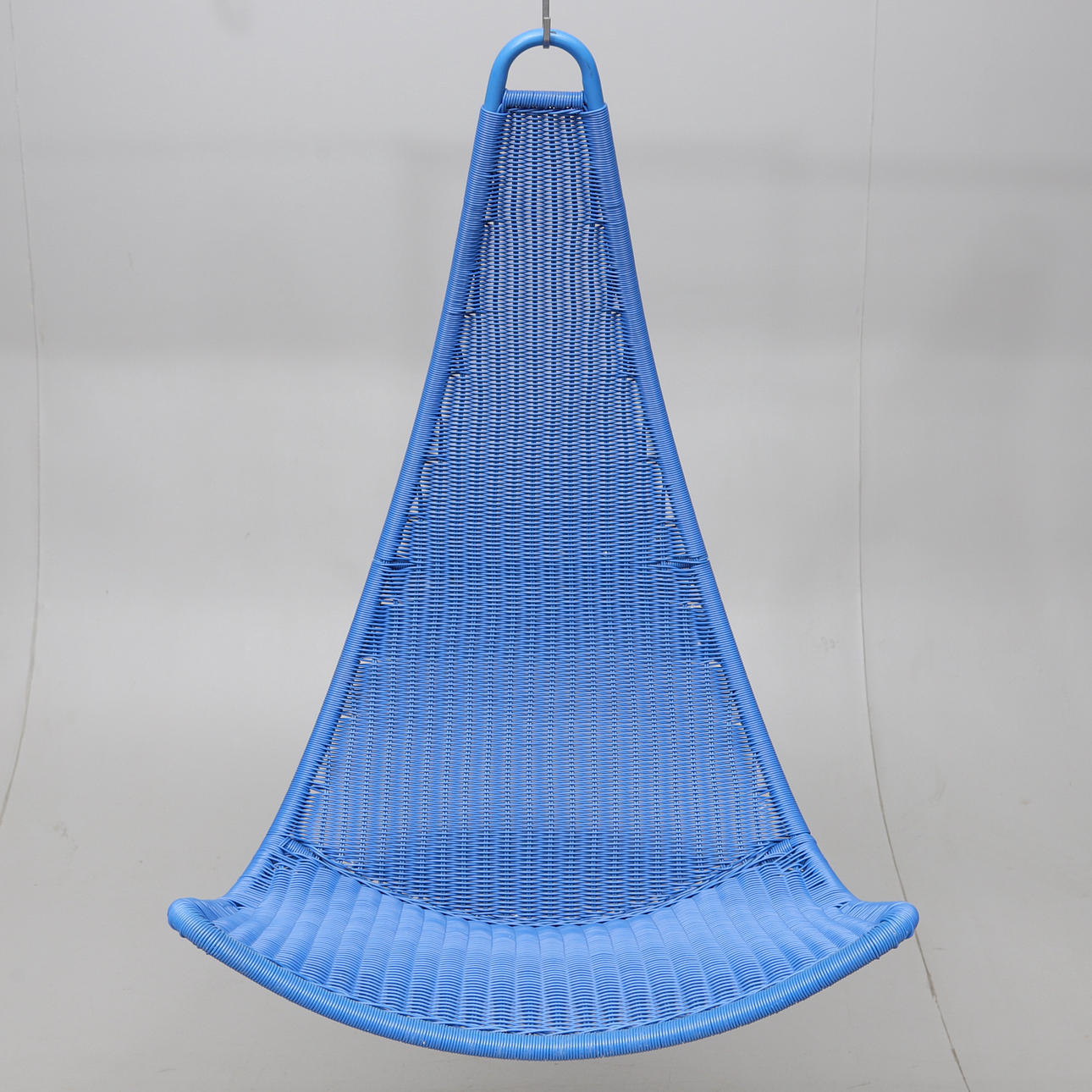 Metallikehys. Selkänoja ja istuin punottu muovia. Korkeus noin 102 cm.