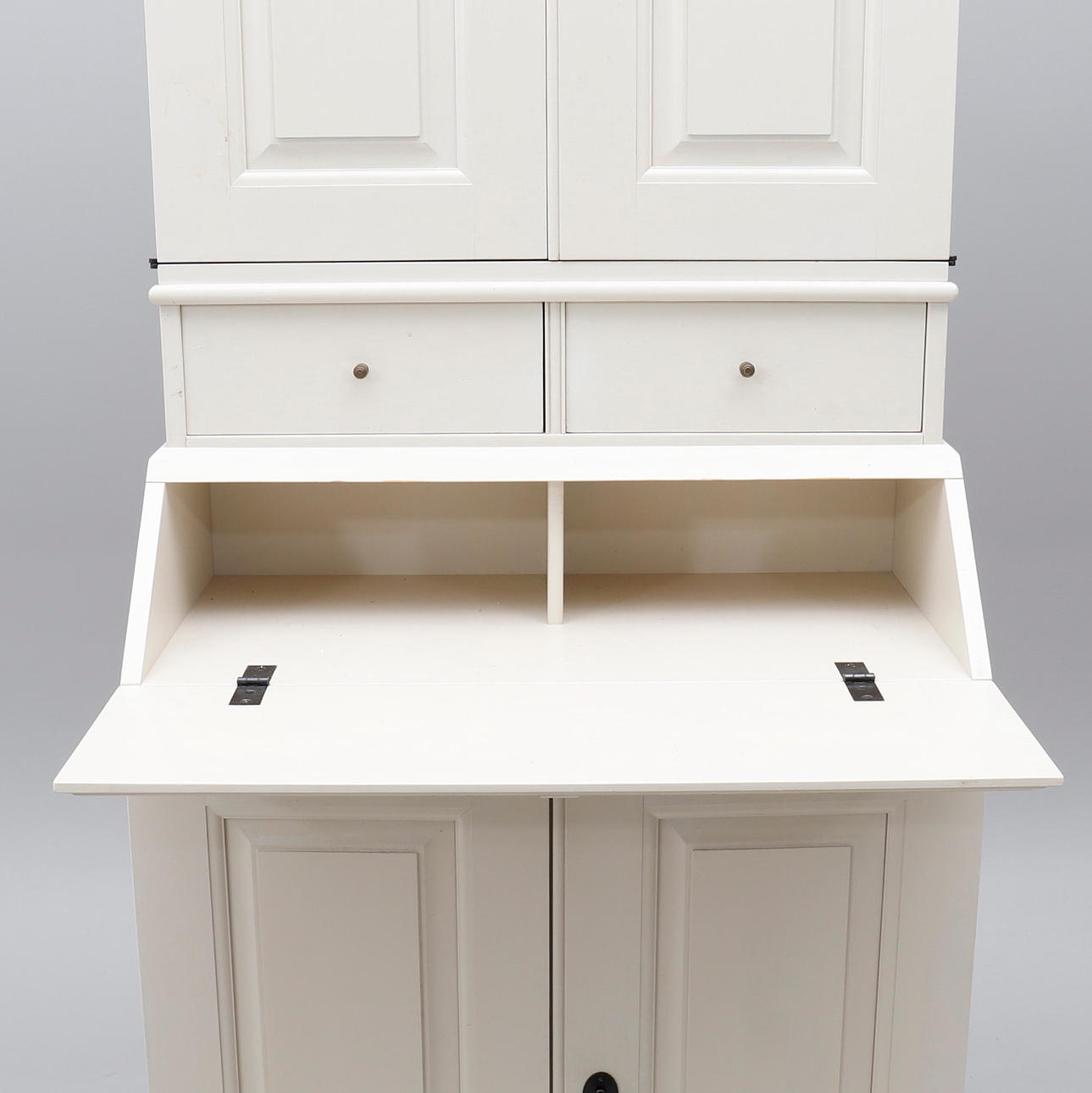 Ikean 1700-luvun sarjasta, lakattu helmenharmaaksi, korkeus 206, leveys 71 cm, syvyys 19-37 cm.
