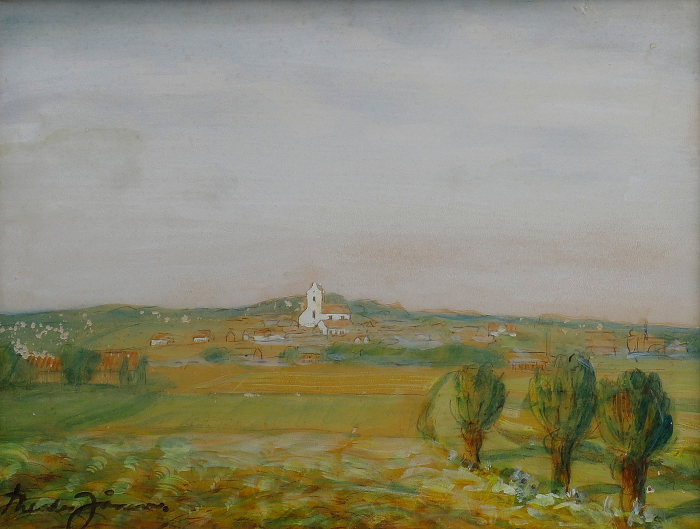 1860631. THEODOR JÖNSSON. NÄKYMÄ KOHTI DALBYN KIRKKOA.