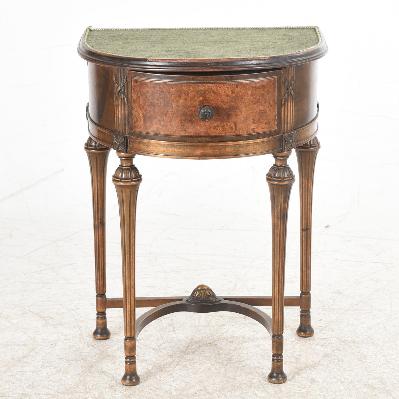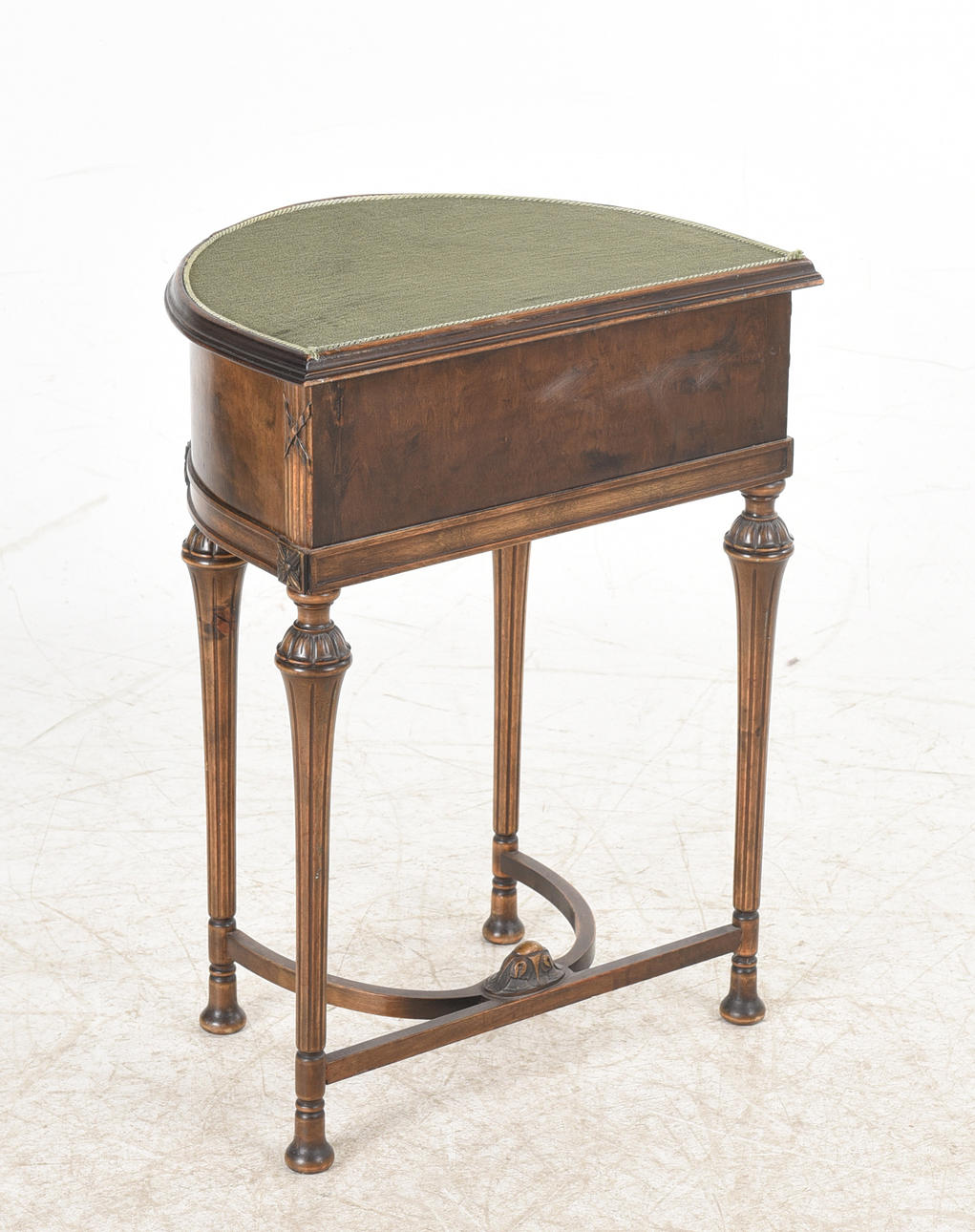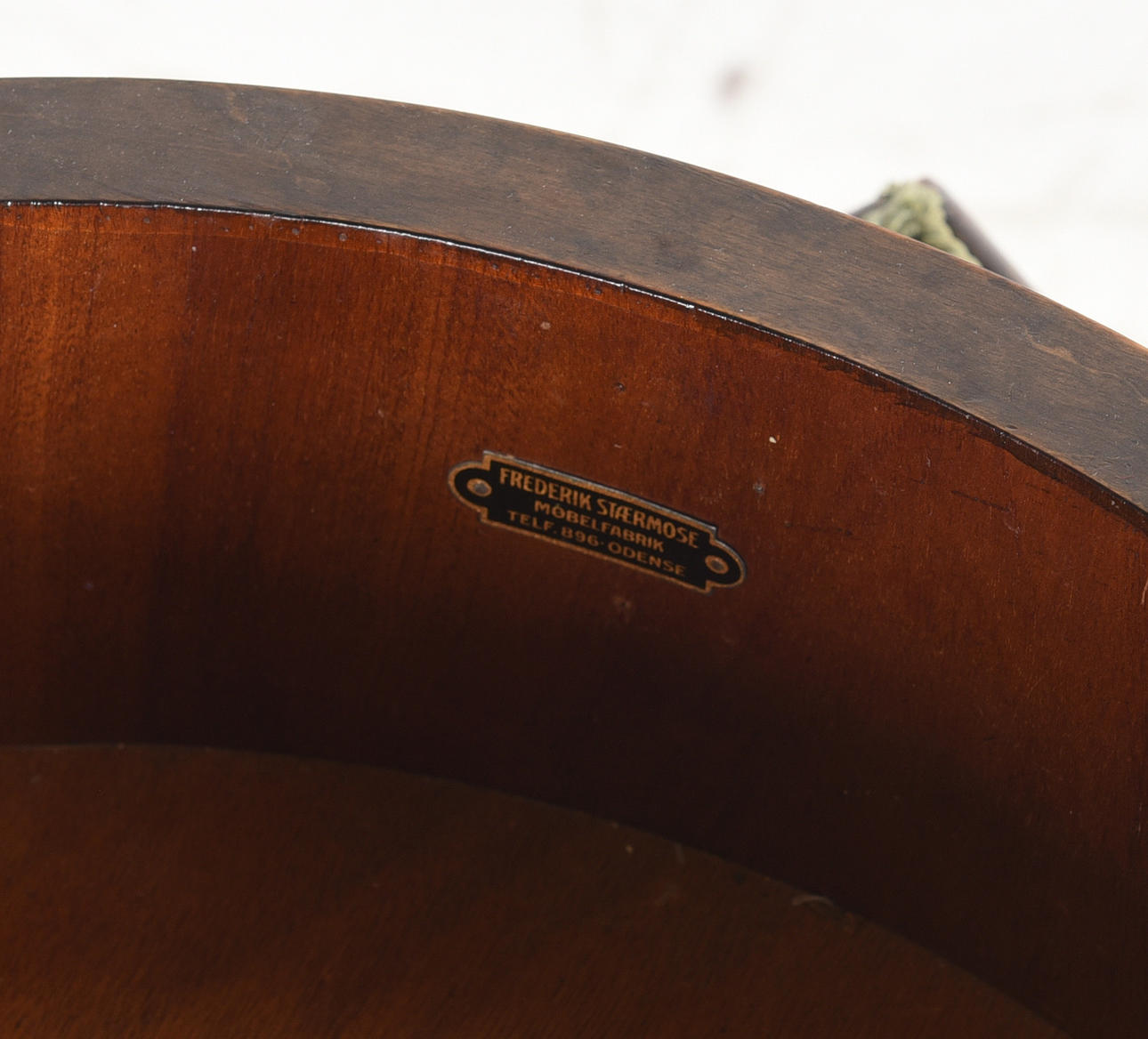 Laatikko reunassa juuriviilulla, tekstiilipäällysteinen levy. 1900-luvun ensimmäinen puolisko. Levyllä merkitty Fredrik Staermose, Odense. Korkeus noin 67 cm. 50 x 36 cm.