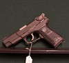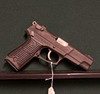 Amerikkalainen puoliautomaattinen pistooli. Tee Ruger Mod. P85. Kaliiperi 9x19. Laajennus nro 300-63627. Nokan pituus 11 cm. Kiinteä näkö. Mustat männän sivut.