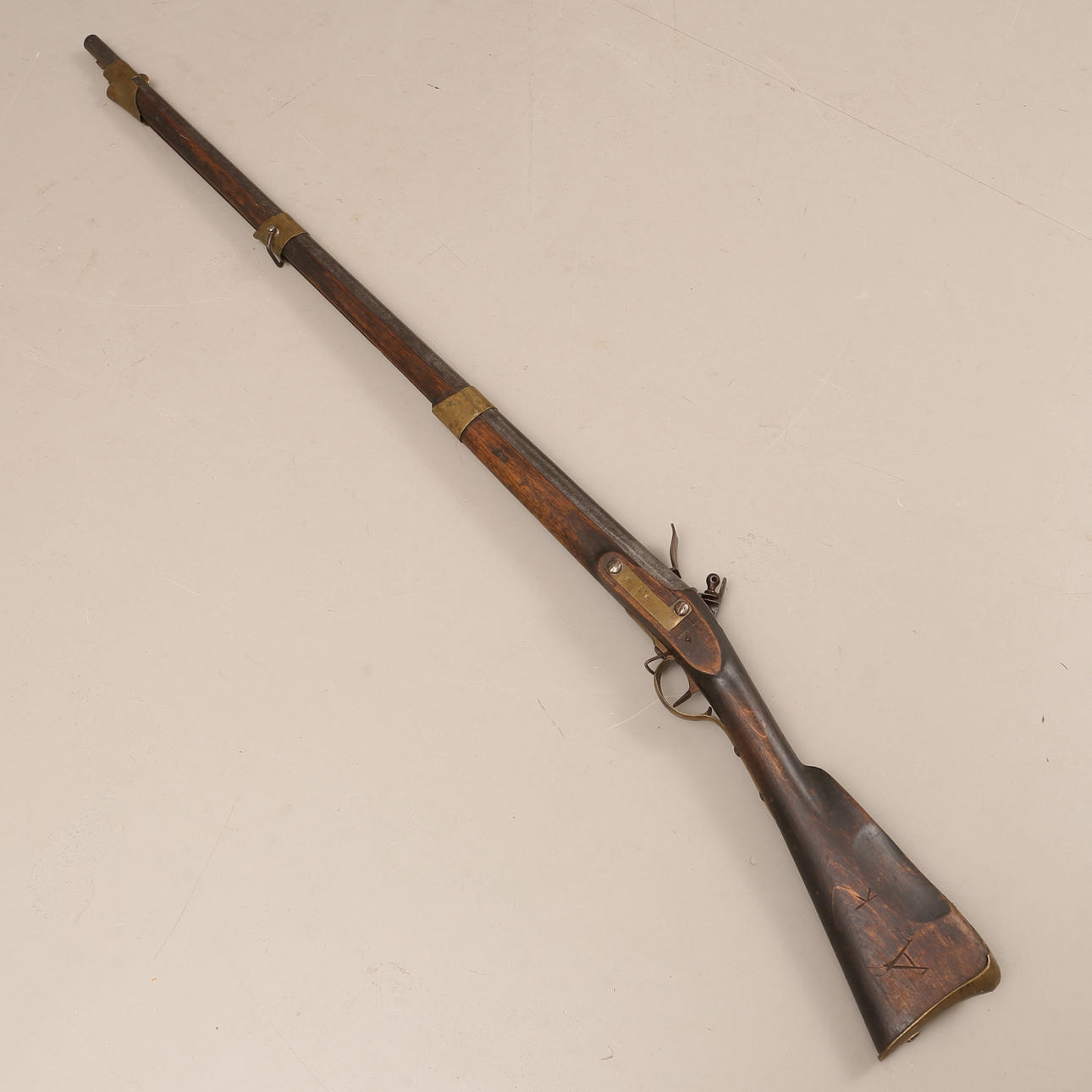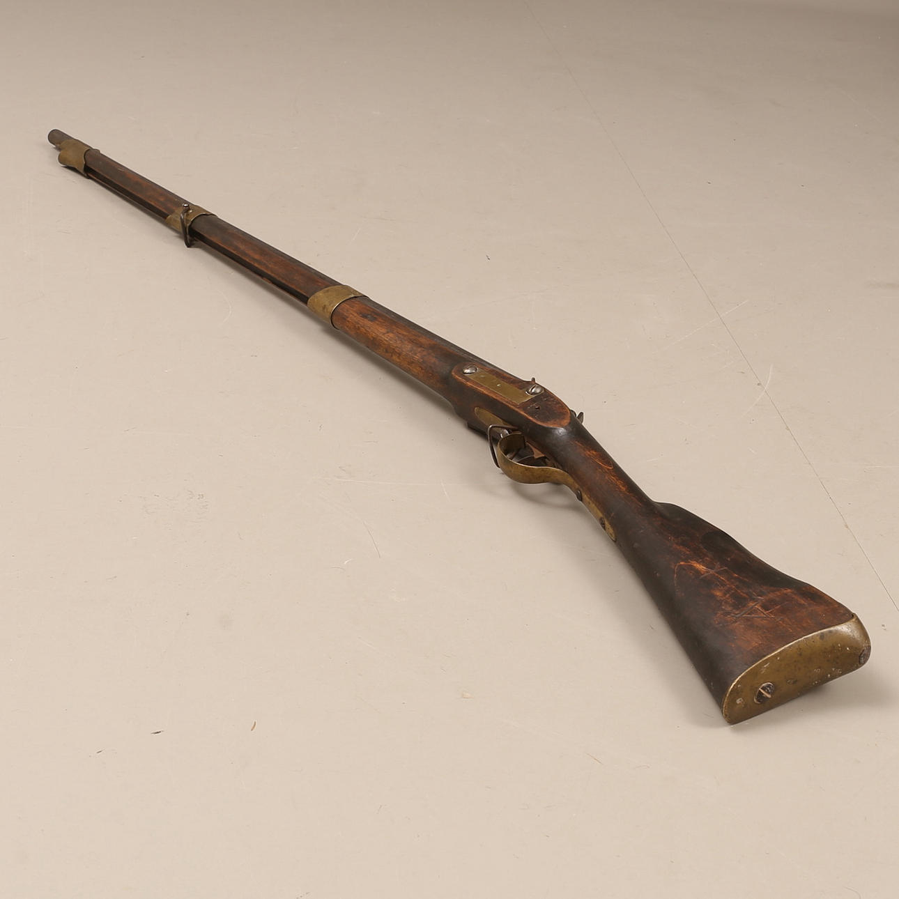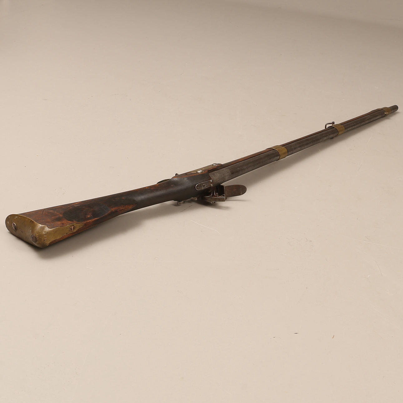 Ruotsalainen piikivimusketti mallissa m/1811, lyhytikäinen malli mallille m/1815. Numeerinen. Pituus noin 147 cm. Kaliiperi noin 18 mm.