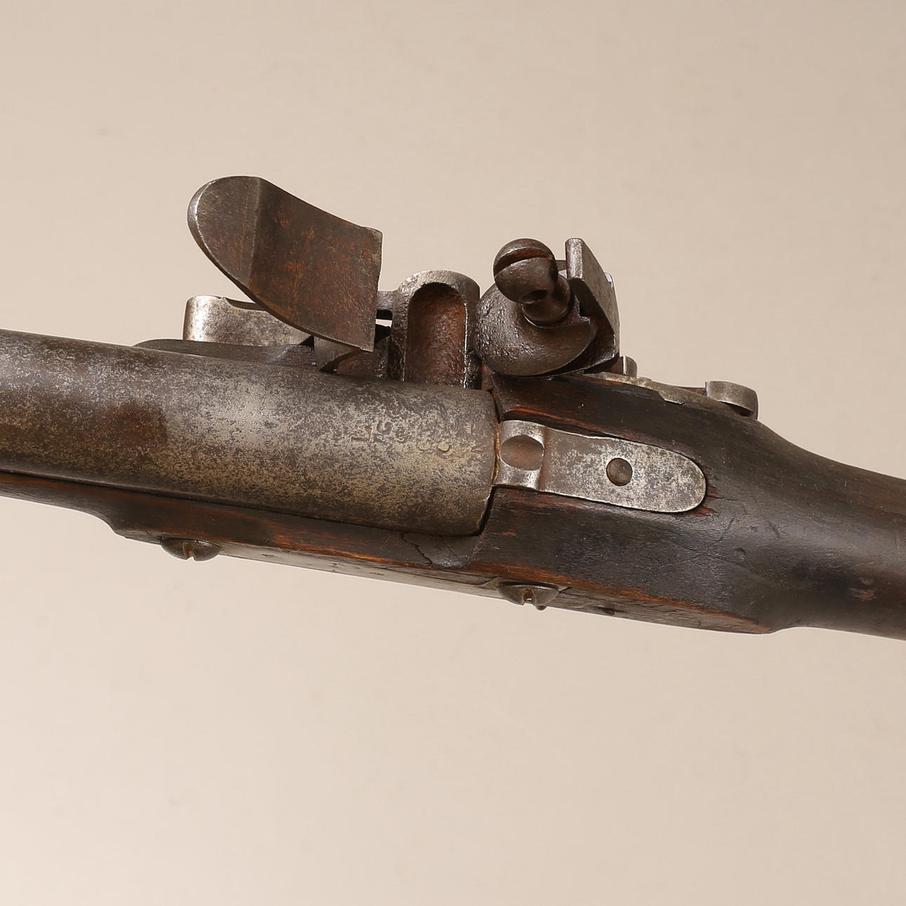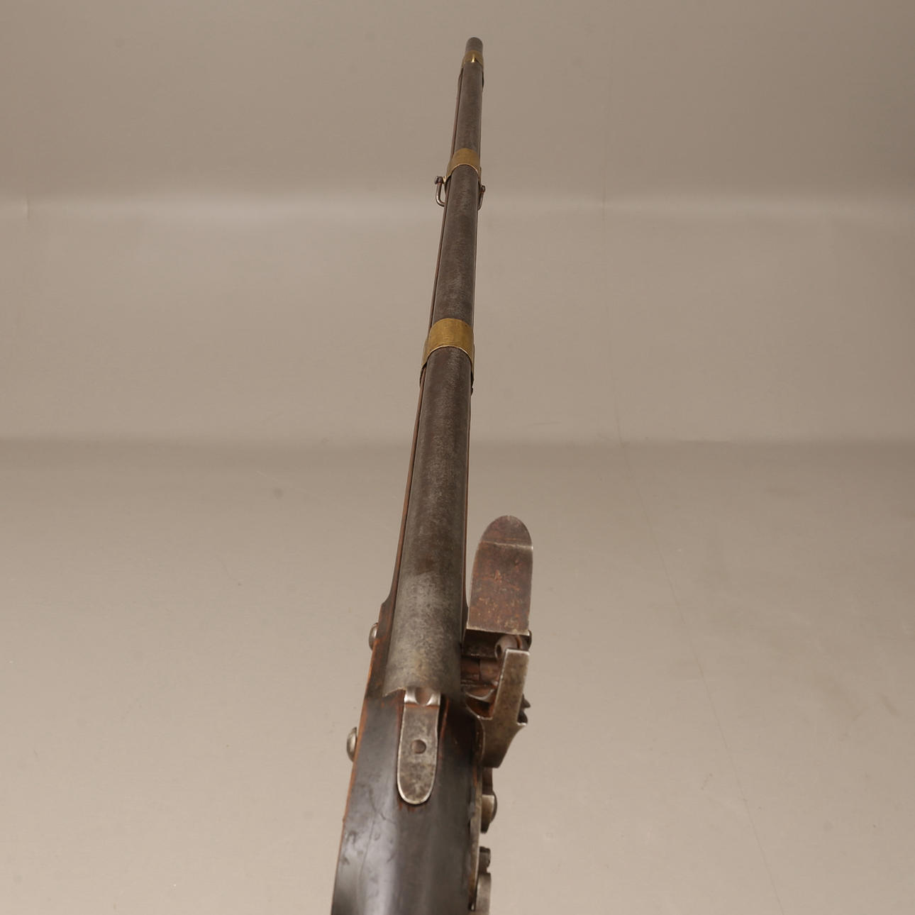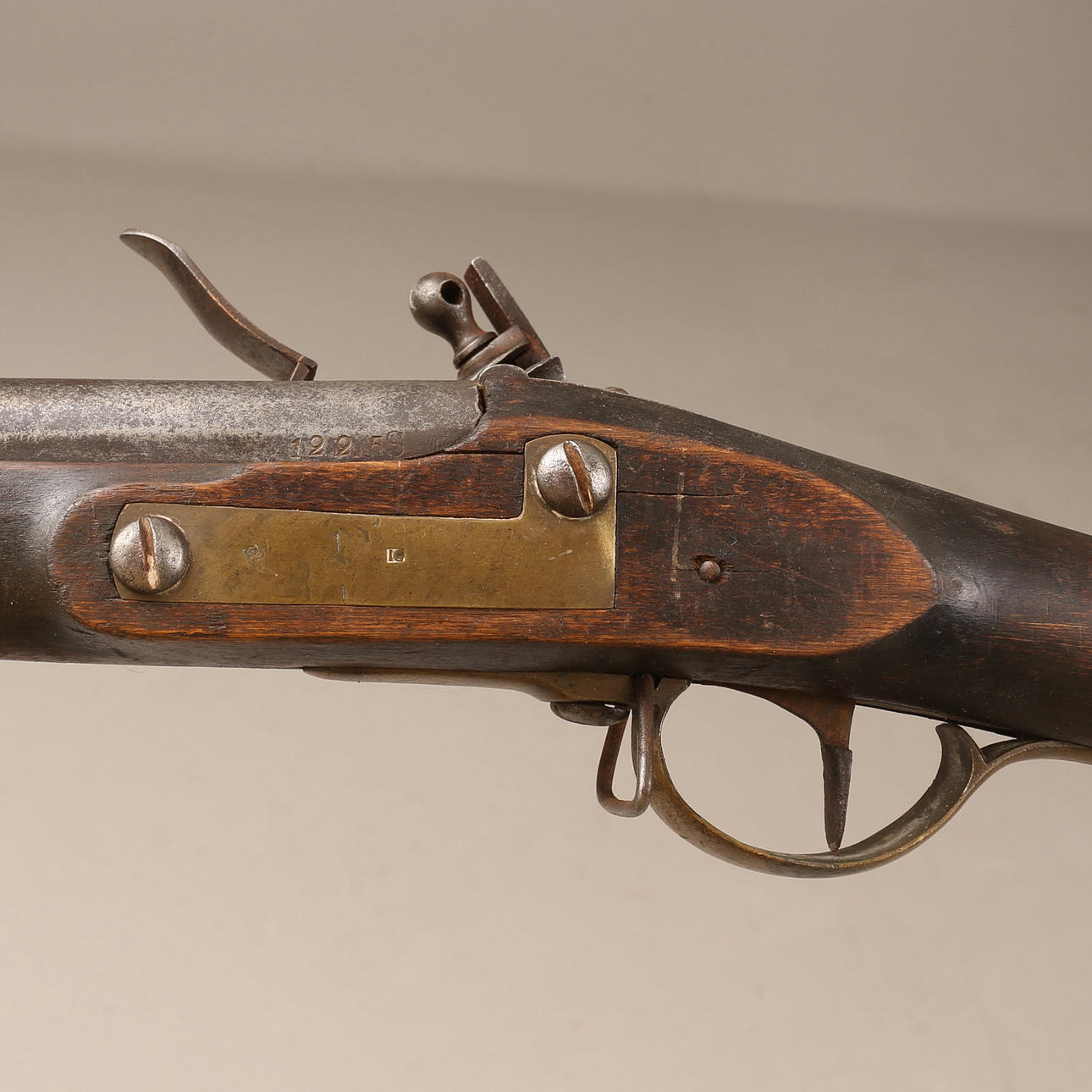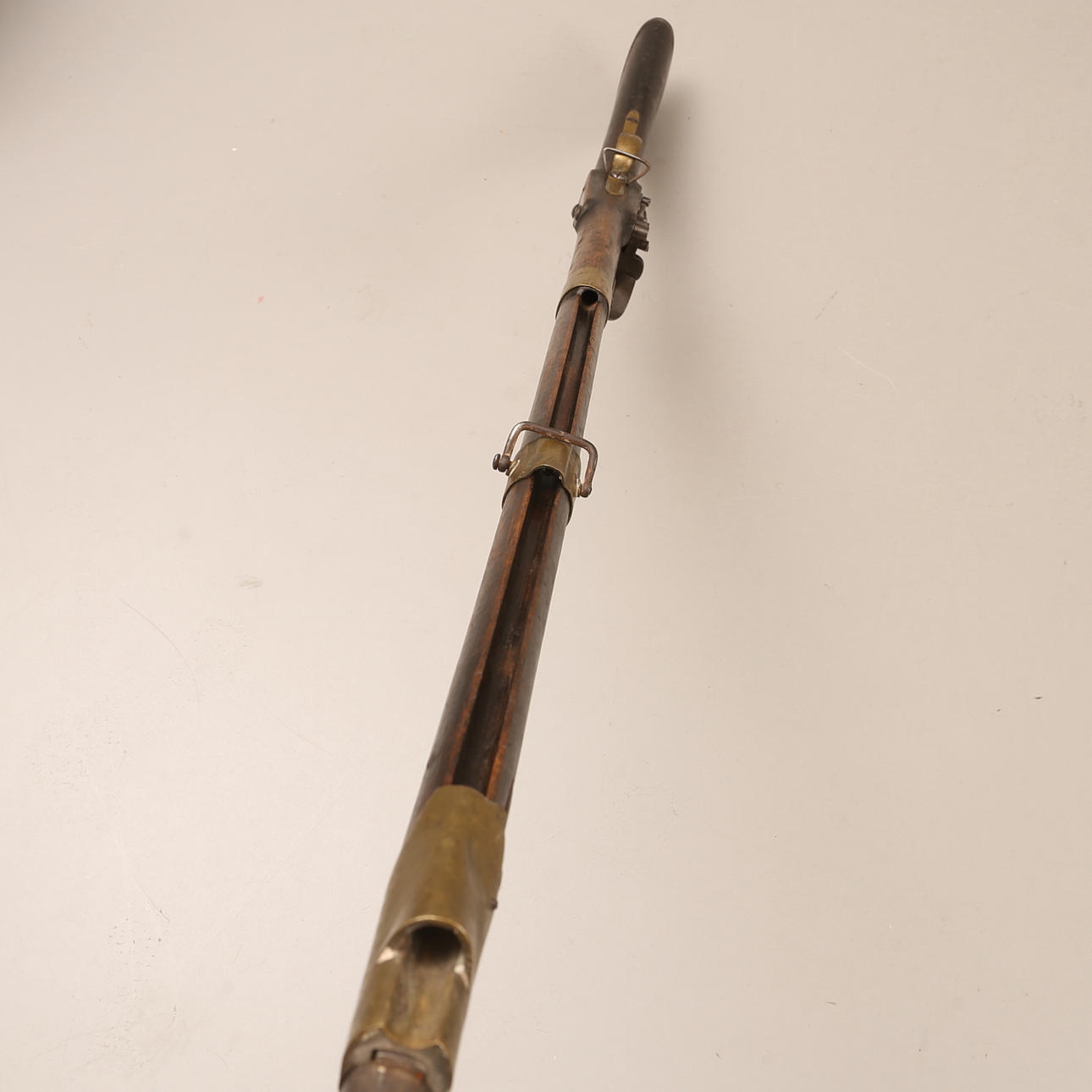 Ruotsalainen piikivimusketti mallissa m/1811, lyhytikäinen malli mallille m/1815. Numeerinen. Pituus noin 147 cm. Kaliiperi noin 18 mm.