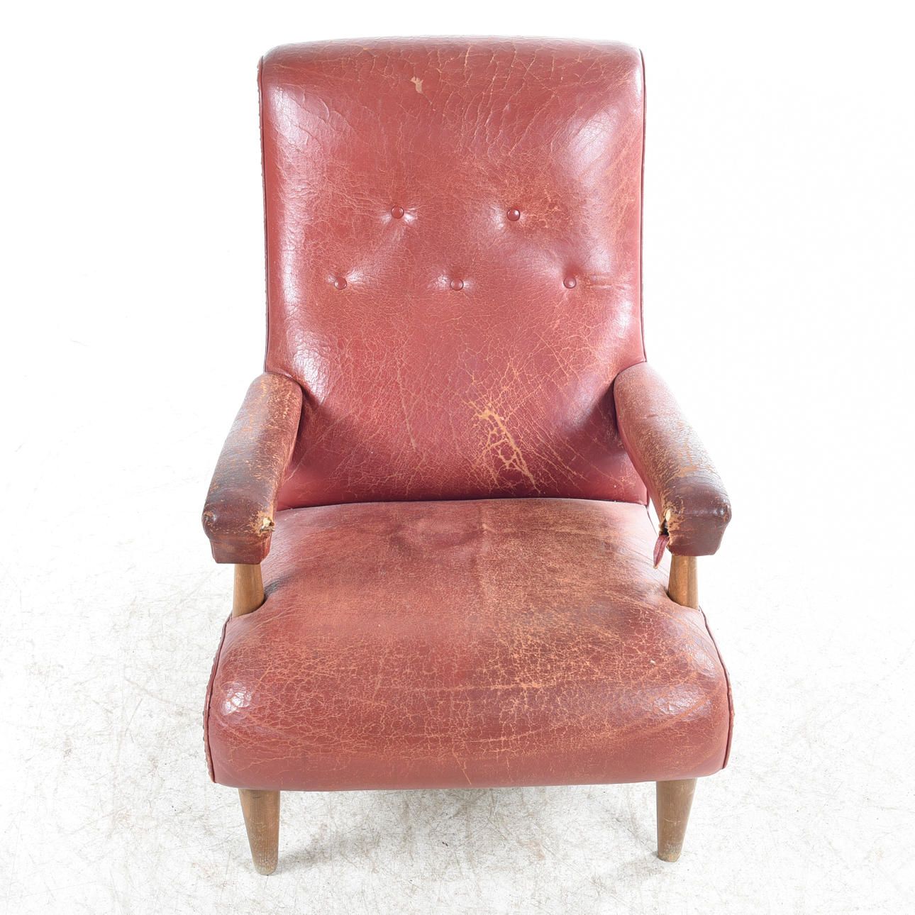 Kirjassa iho, luut. Ostettu Eric Chambertin huonekaluliikkeestä Norrköpingistä. Istuinkorkeus n. 35 cm. Korkeus noin 89 cm. Leveys noin 65 cm.
