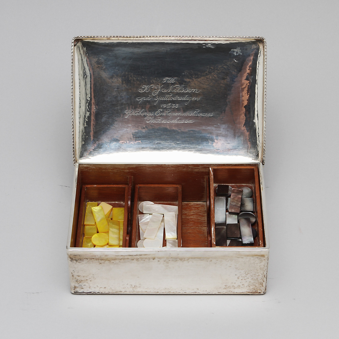 190155. LAATIKKO SPELMARKERilla, hopea.