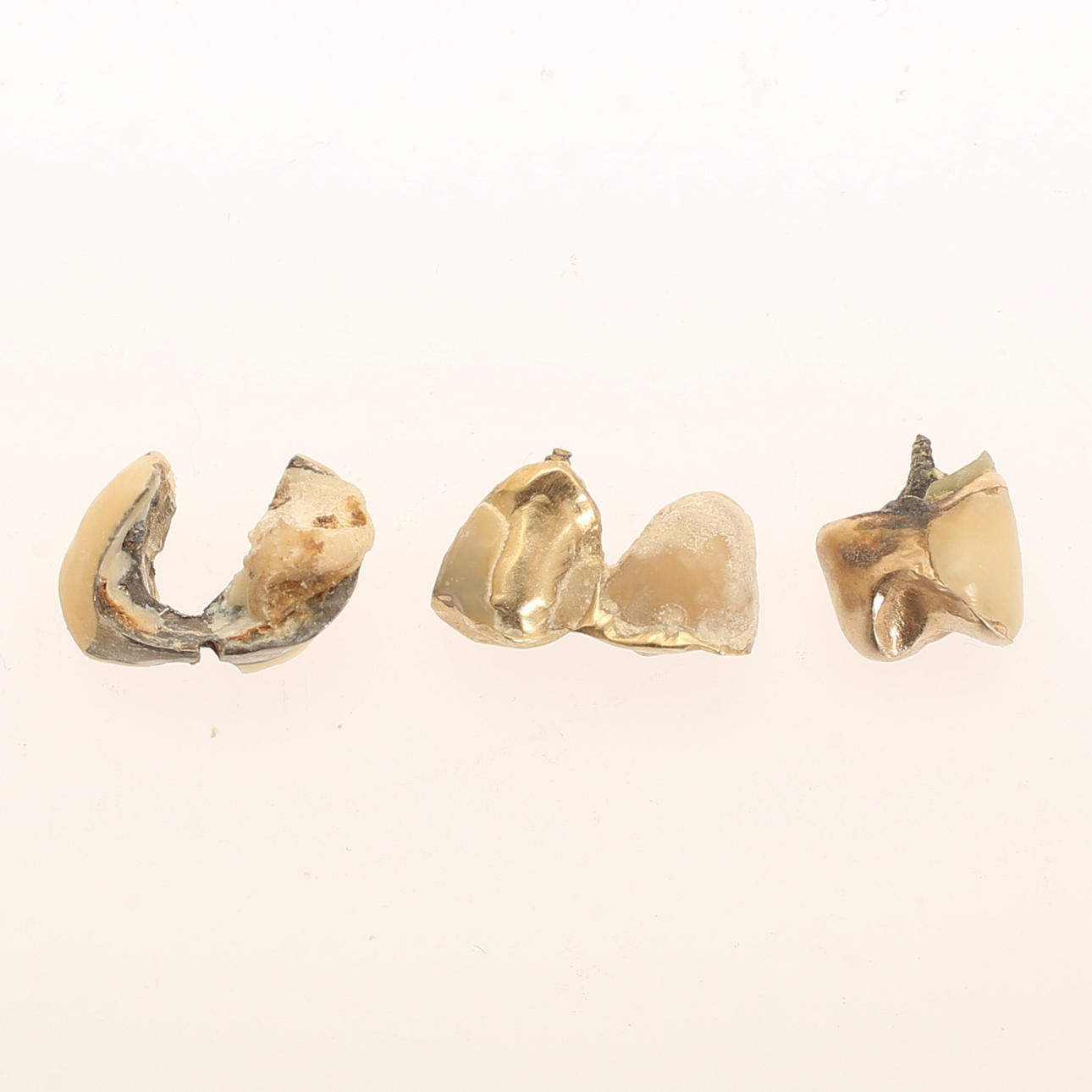 Valkokultainen hammas. Kokonaispaino noin 6,82 grammaa.