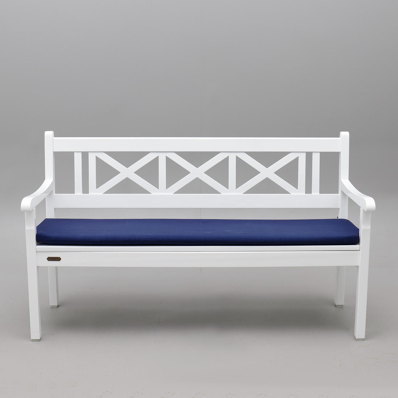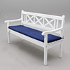 Mukana tummansinisellä kankaalla päällystetyt täytetyt löysät tyynyt ja pieni tölkki valkoista alkuperäistä maalia.