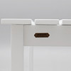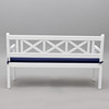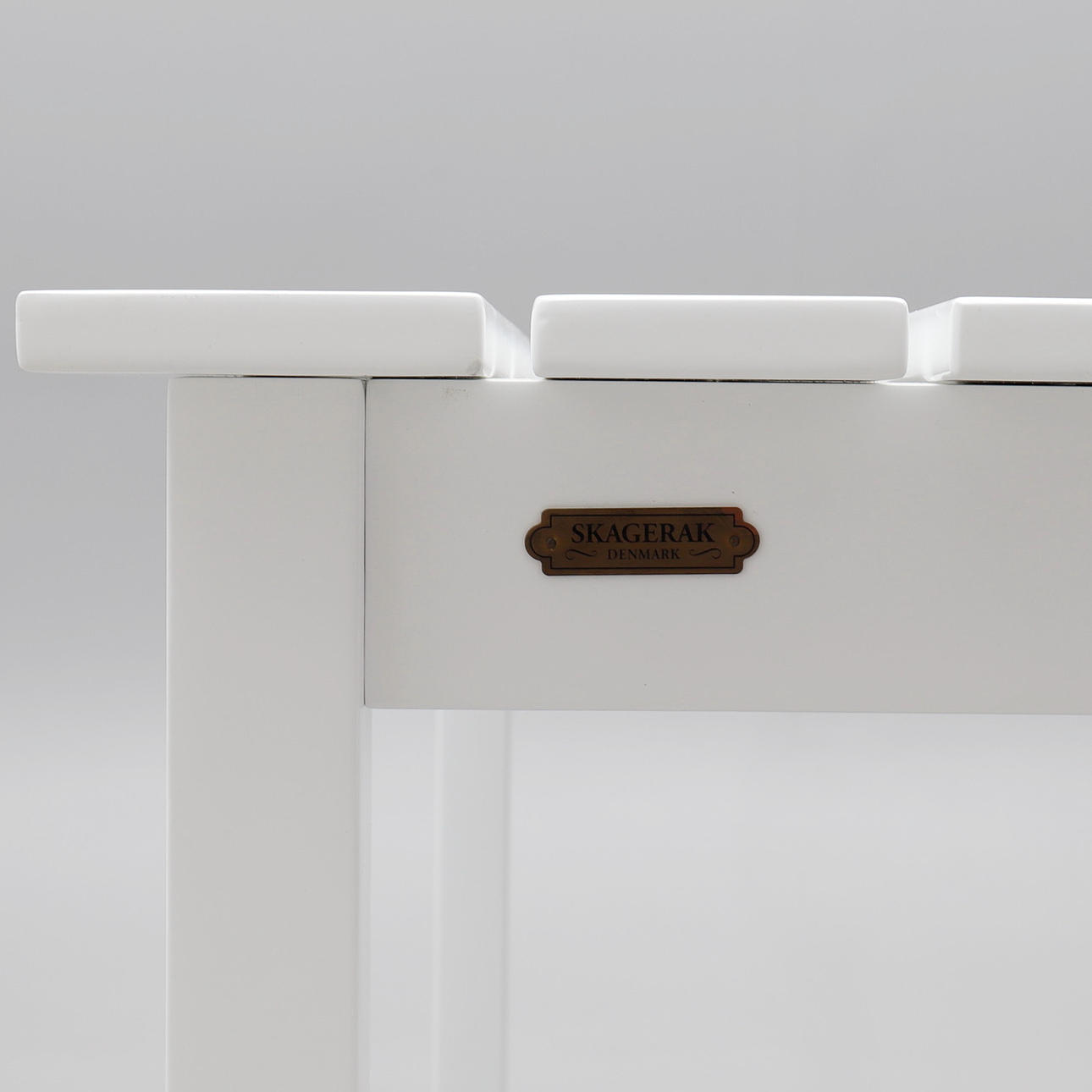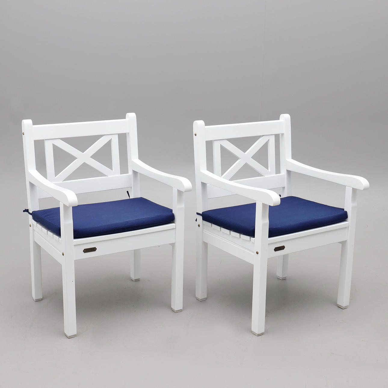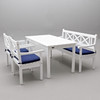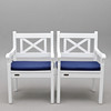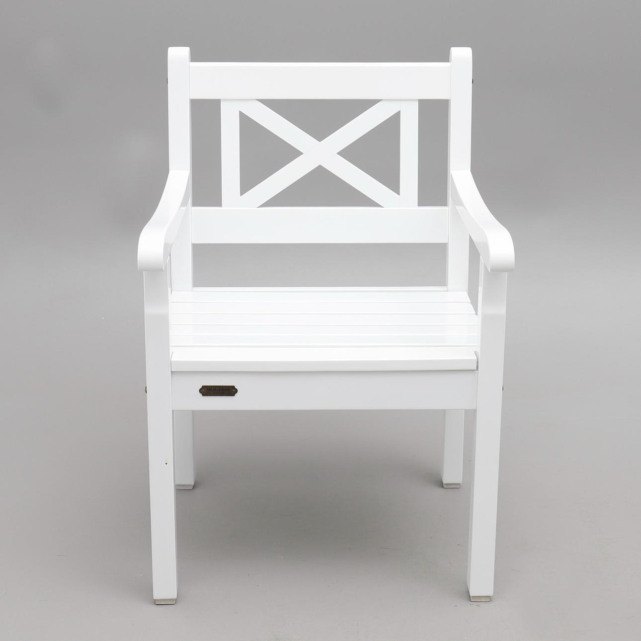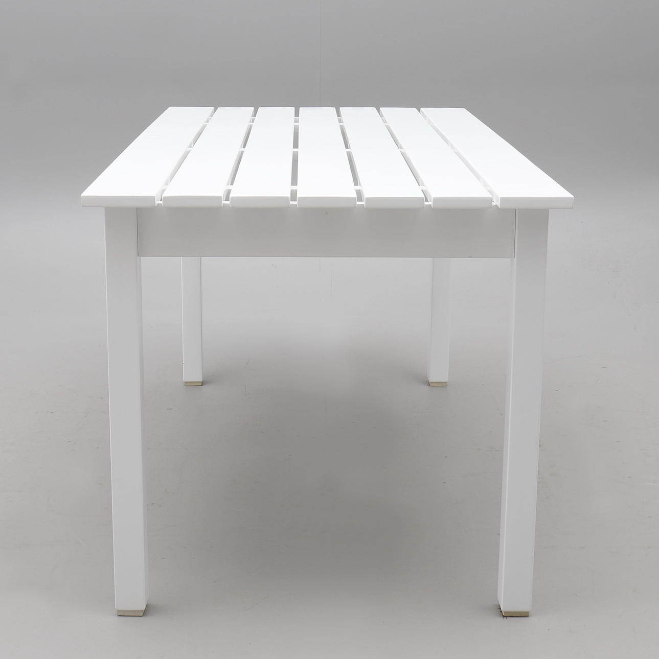 Pöytä, sohva ja pari nojatuolia. Lakattu valkoinen.
