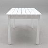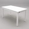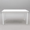 Pöytä suorakaiteen muotoisella kannella, pituus 140, leveys 78, korkeus 74,5 cm.