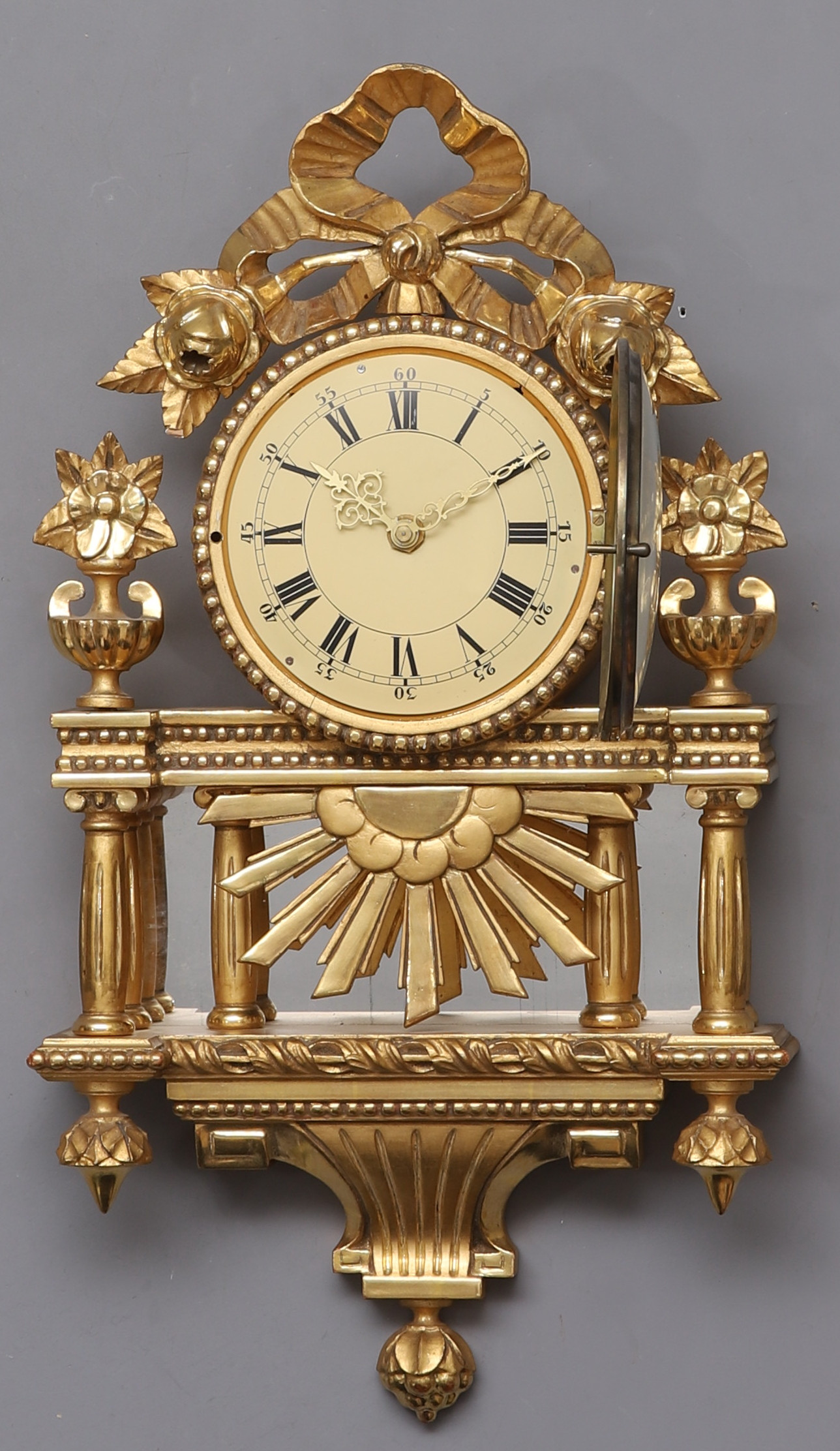 2044000. SEINÄKELLO, kullattu puu, kvartsi.