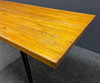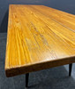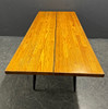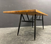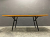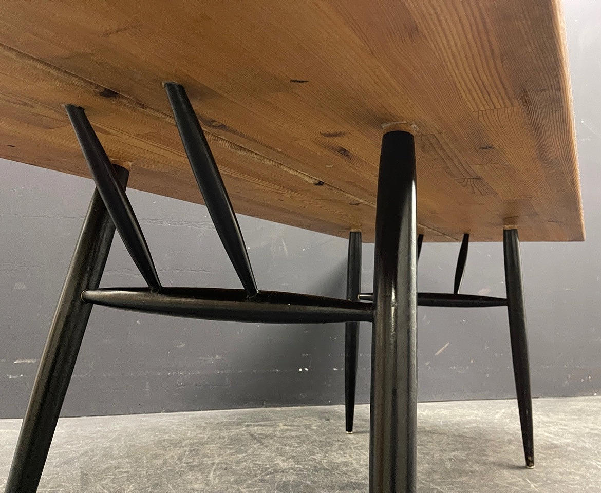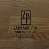 Suunnittelu Ilmari Tapiovaara Valmistaja Laukaan Puu Mäntypöytälevy, mustaksi lakattu puurunko. korkeus n. 69 cm, leveys n. 180 cm, syvyys n. 75 cm.