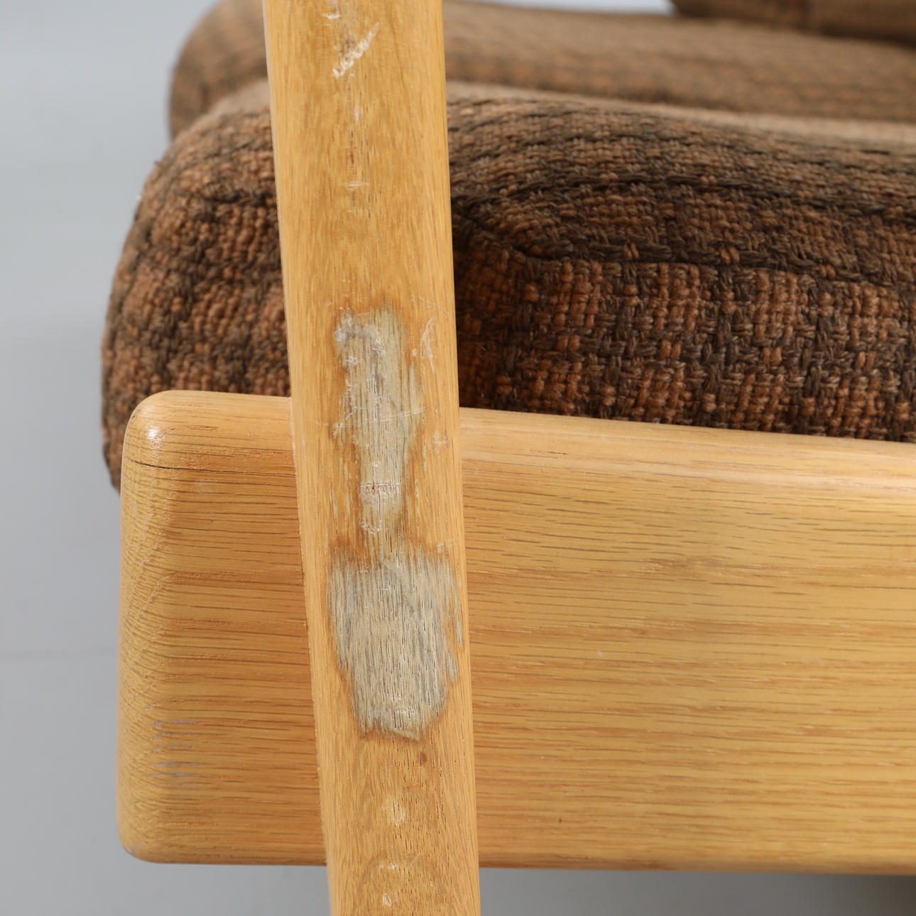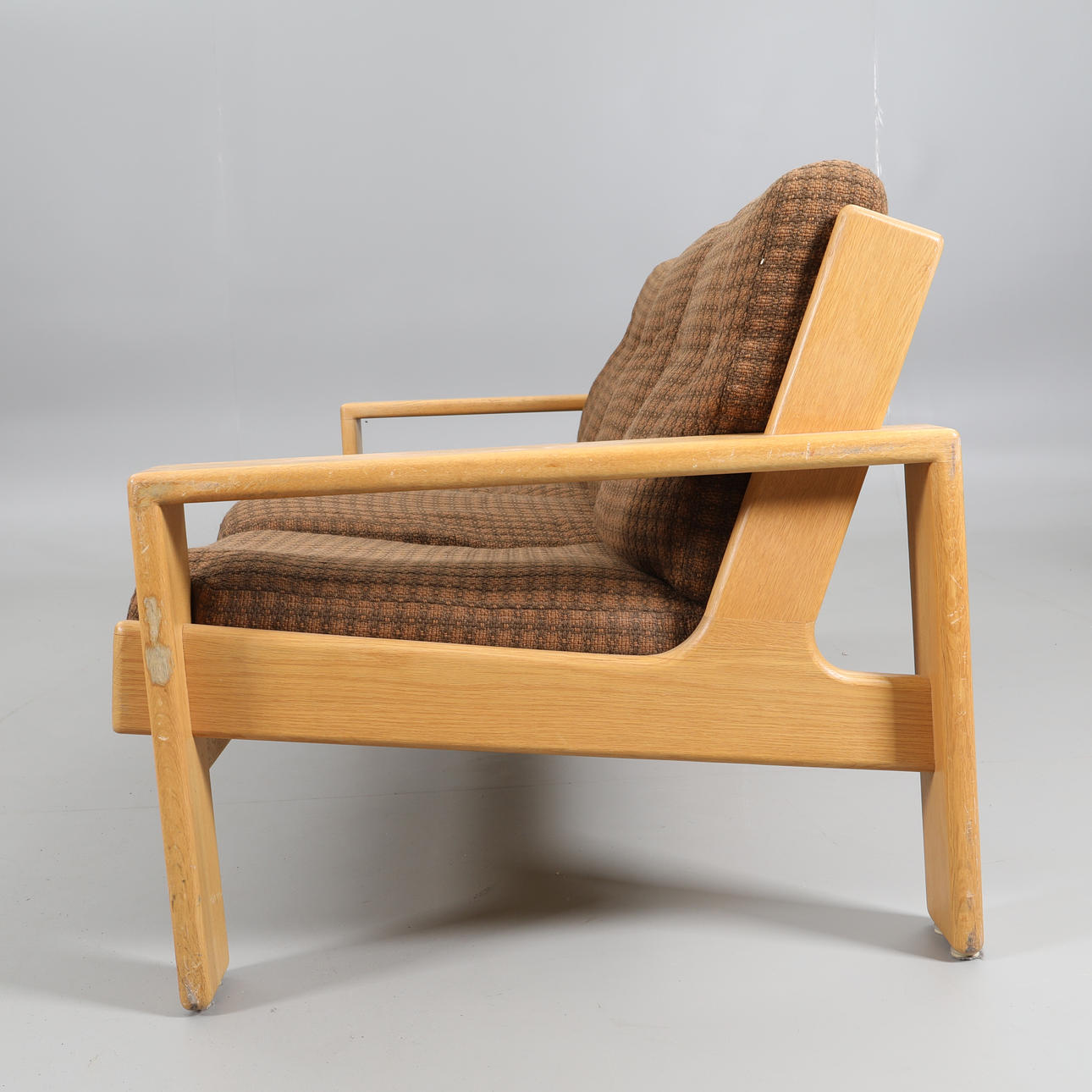 Nojatuoli, selkänojan korkeus 70, istuinkorkeus n. 40 cm.