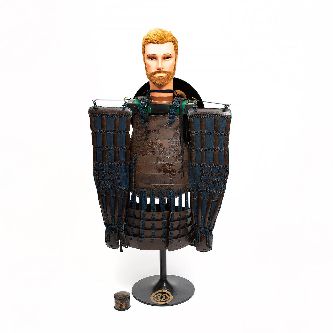 Sisältää do, kote ja jingasa. Kypärä ja teline Monin tunnuksilla. Telineen korkeus n. 135 cm.