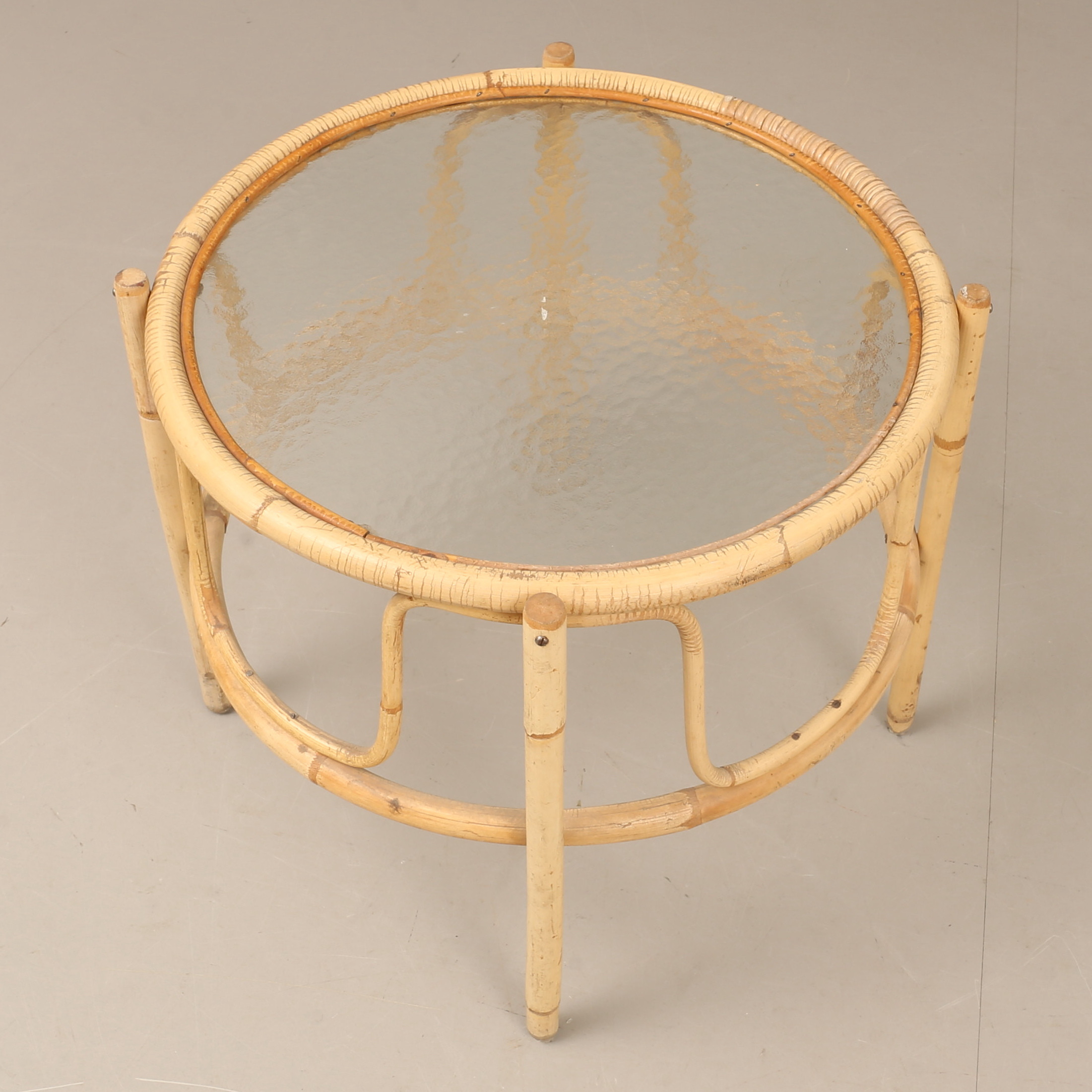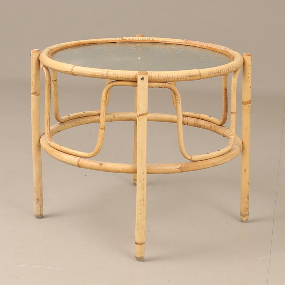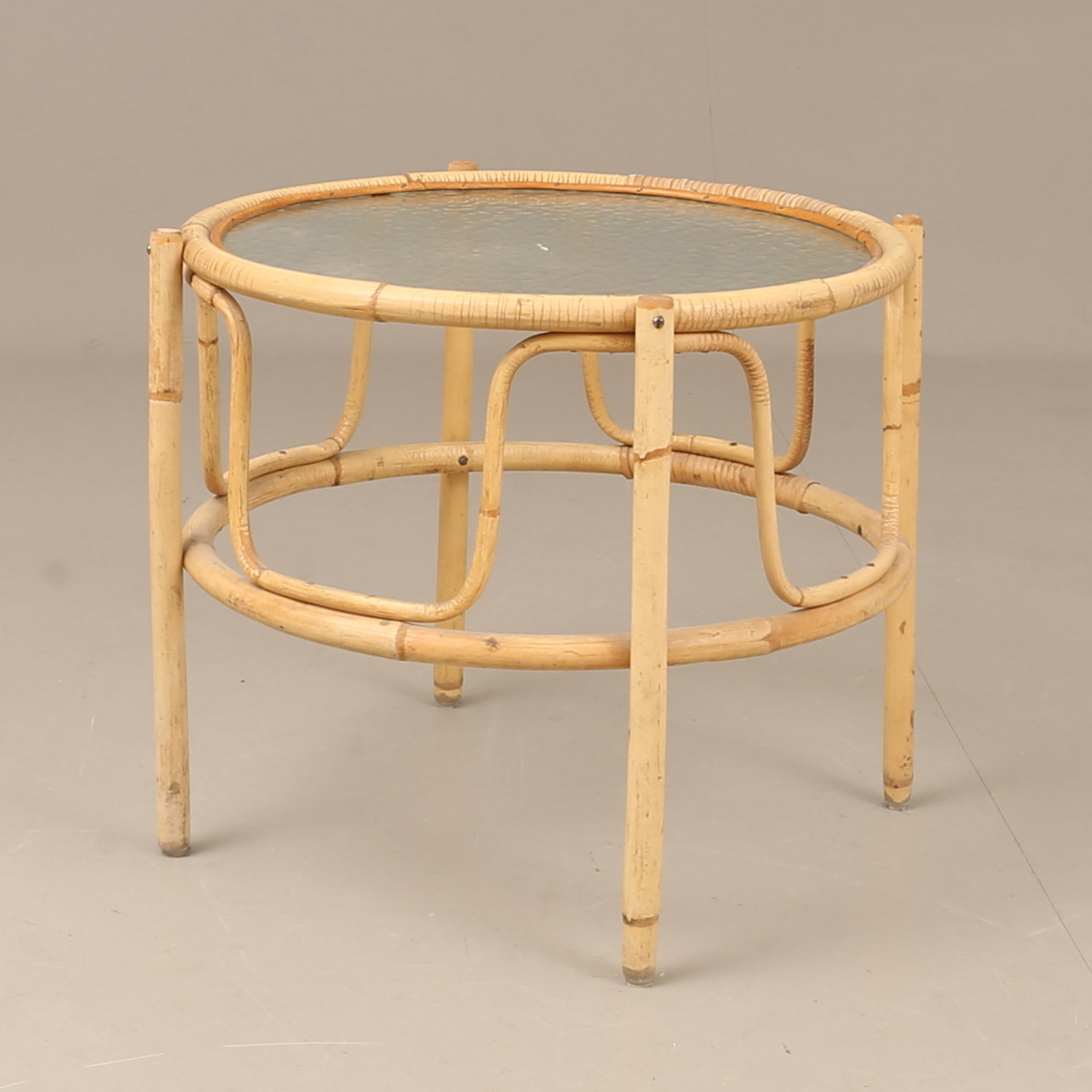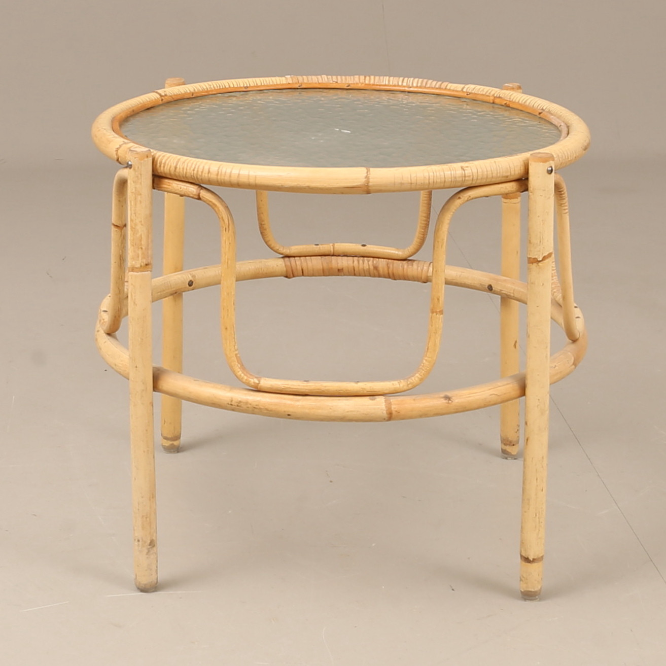 2099230. SOHVIPÖYTÄ, rottinki lasilla.