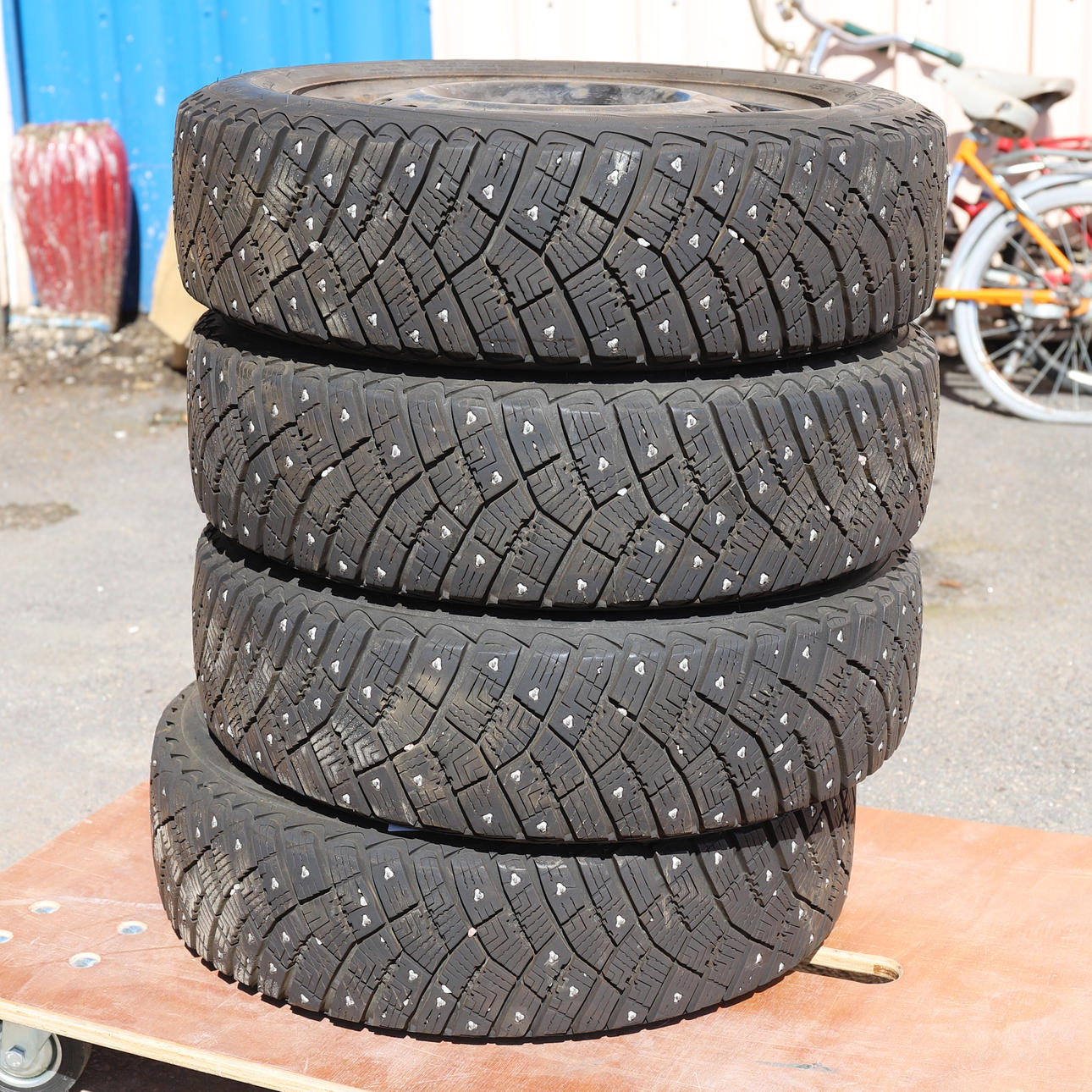 Rekisteröintinumero JSN440. Kaksi avainta. Mukana nastarenkaat metallivanteilla.