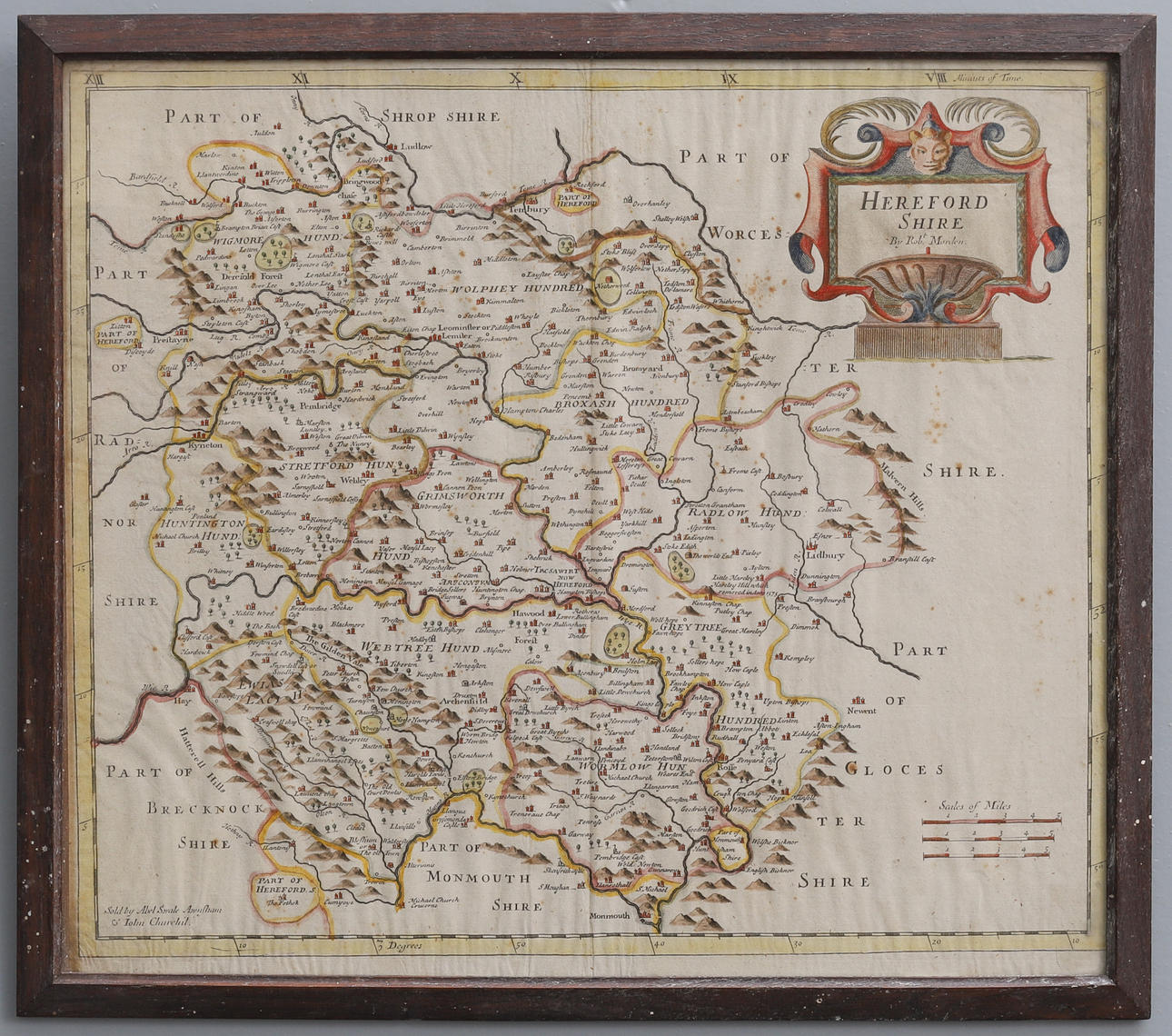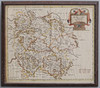 käsinvärinen kaiverrettu kartta, 37,5 cm x 42 cm, lasitetussa tammikehyksessä, haalari 41 x 46 cm.