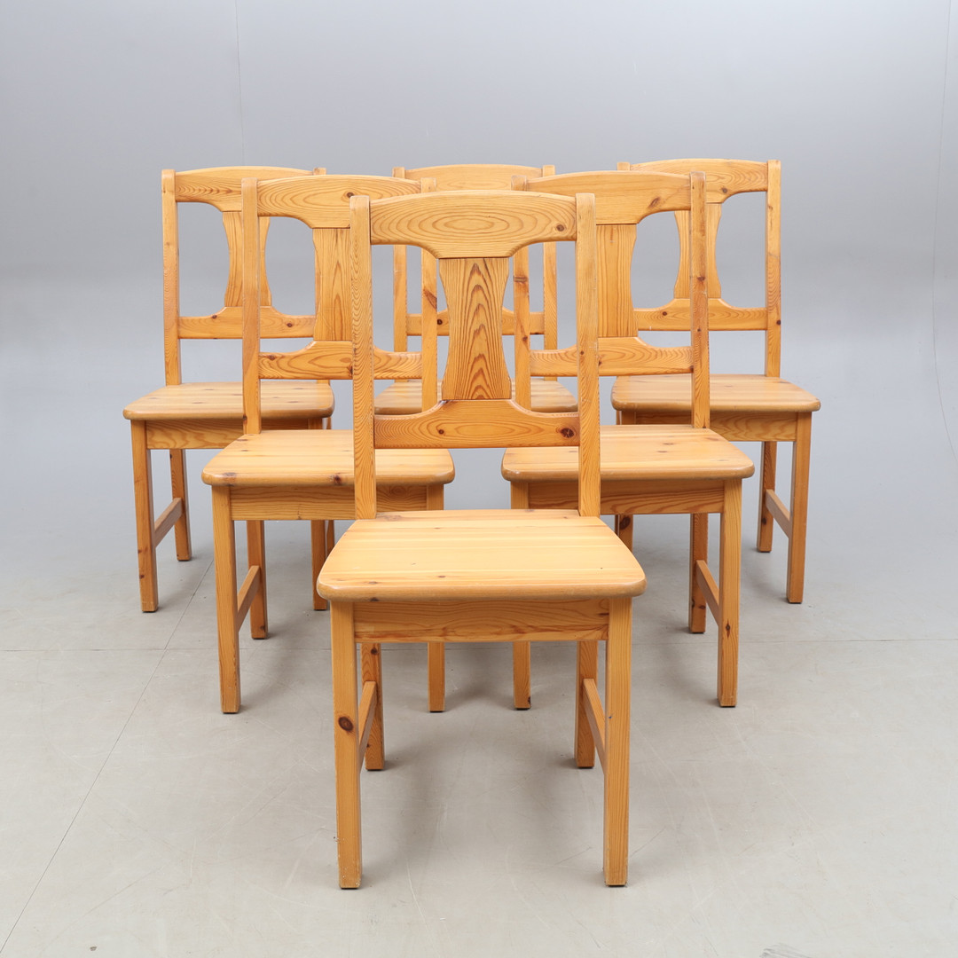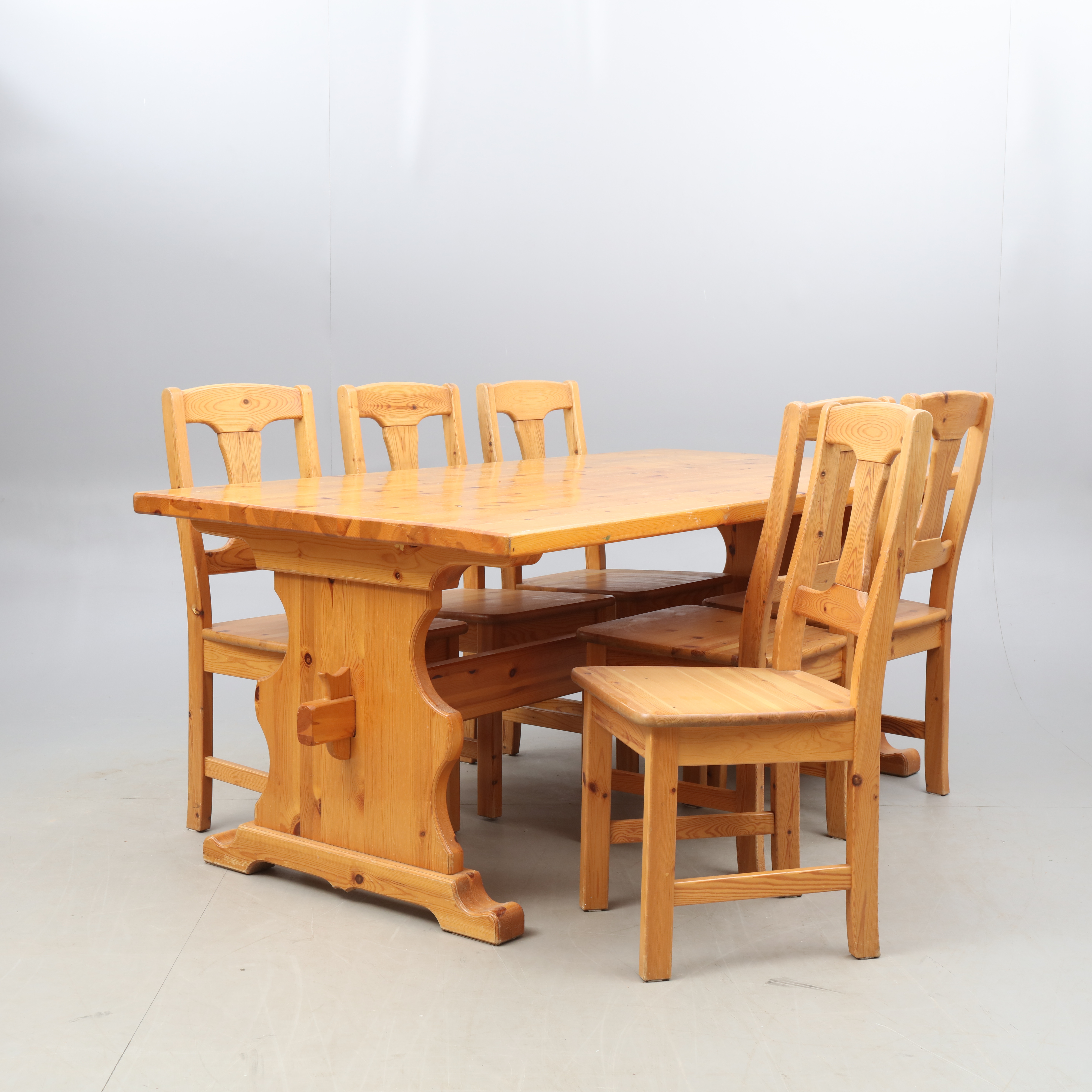 2202184. SOHVIPÖYTÄ ja 6 TUOLIA, Pine.