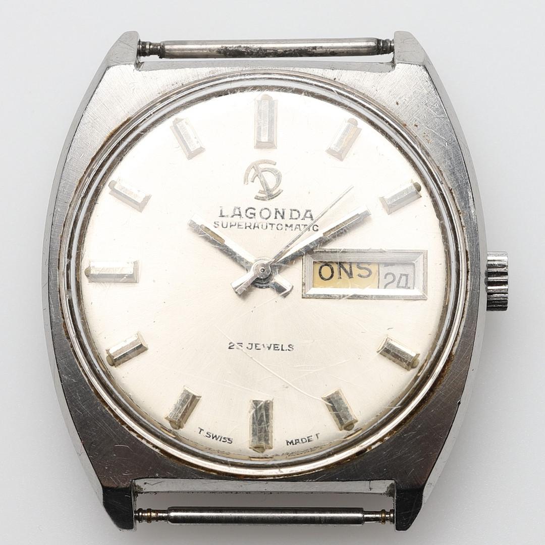 2211728. LAGONDA. rannekello, Superautomatic, kalenteri, 1980-luku.