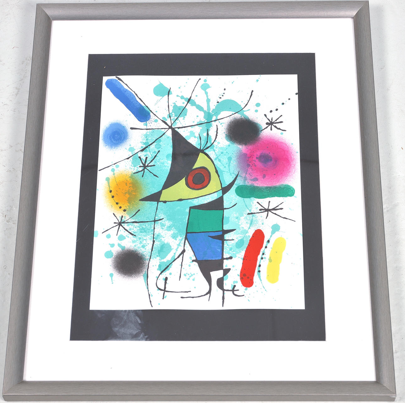 JOAN MIRÓ Värilitografia, Miró Lithographesta vuodelta 867.(d). Signoimaton, Arkin mitat 35,5X29 cm Kehyksen mitat 53X43 cm.