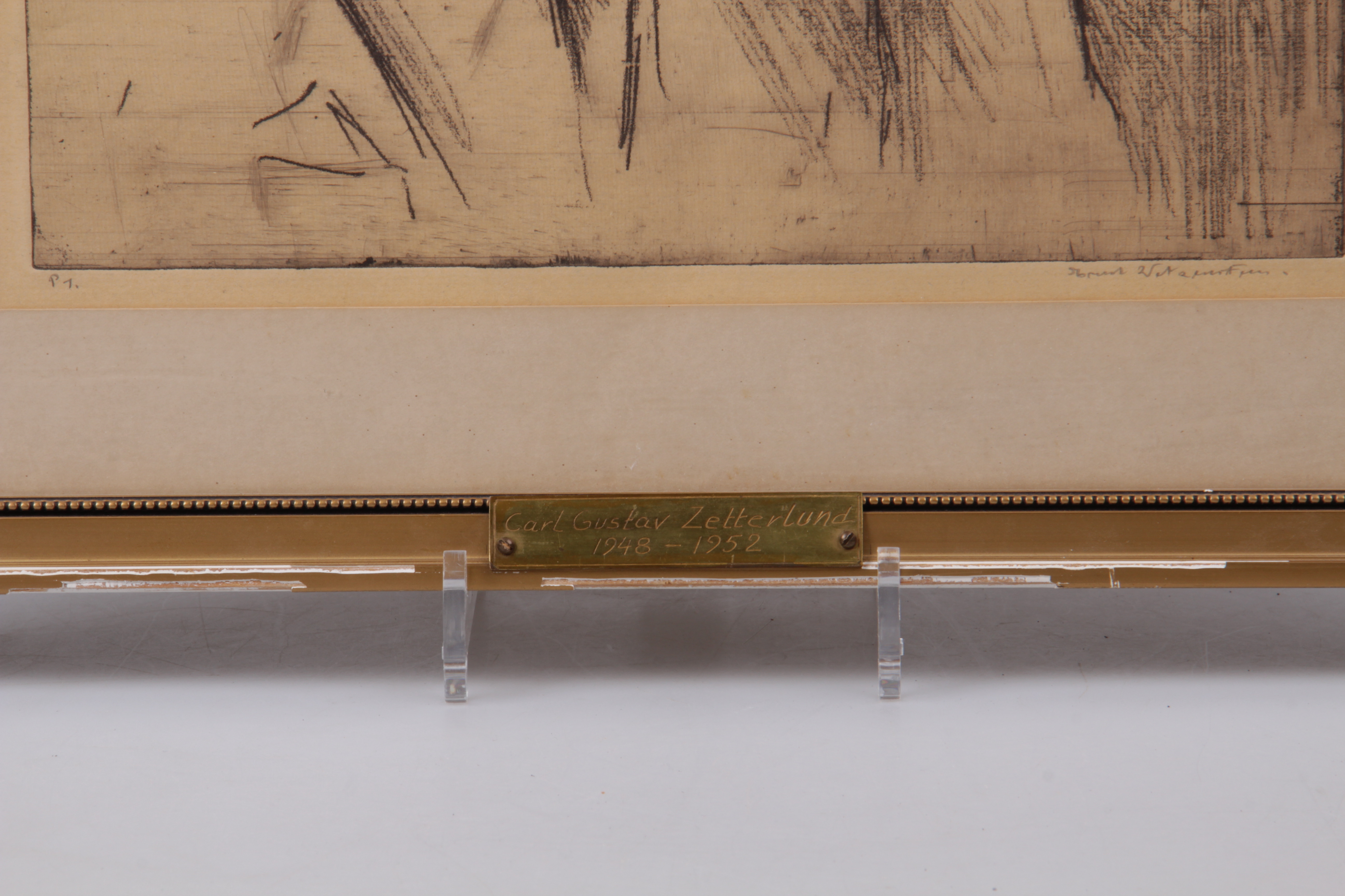 222912. OIDENTIFIERAD KONSTNÄR. Etsaus ja 2 piirustusta. Osittain Salomon "Saly" Smolianoff.