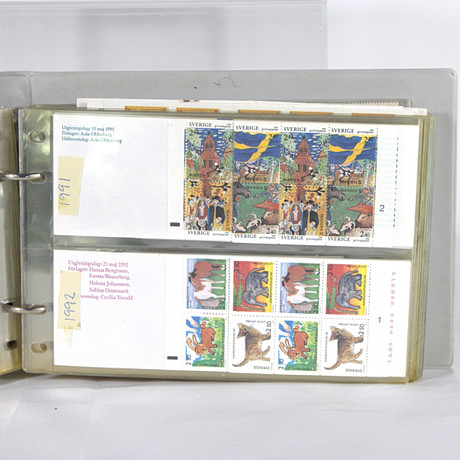 Erä lohkoja käyttämättömiä ja käytettyjä, asennettuna inserttialbumiin, 64 sivua.