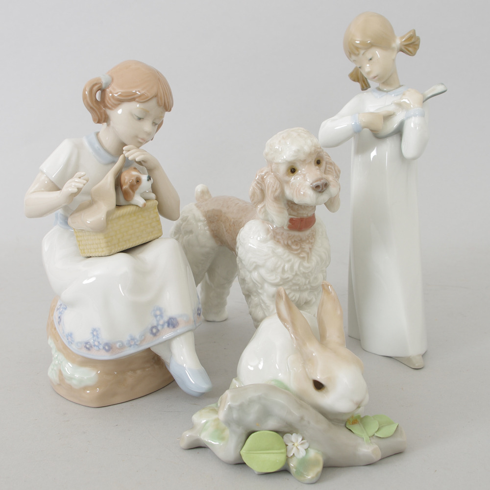 229913. FIGURUJA, 4 kpl, posliinia, korkeus 8-20 cm.