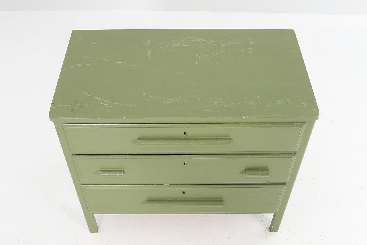 Myöhempi maalaus, kulumaa, pieniä puuvaurioita. Avain puuttuu.