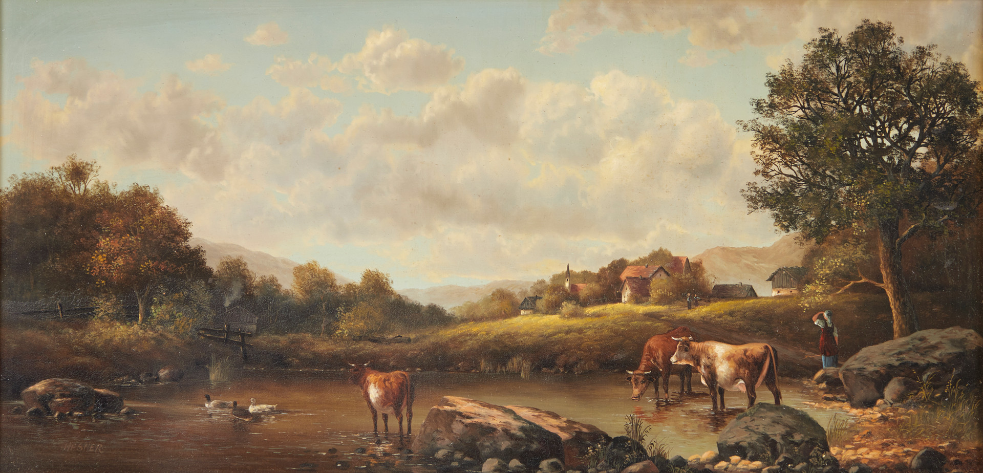 2310652. MICHAEL HESNER. Maalaus, maisema karjalla.