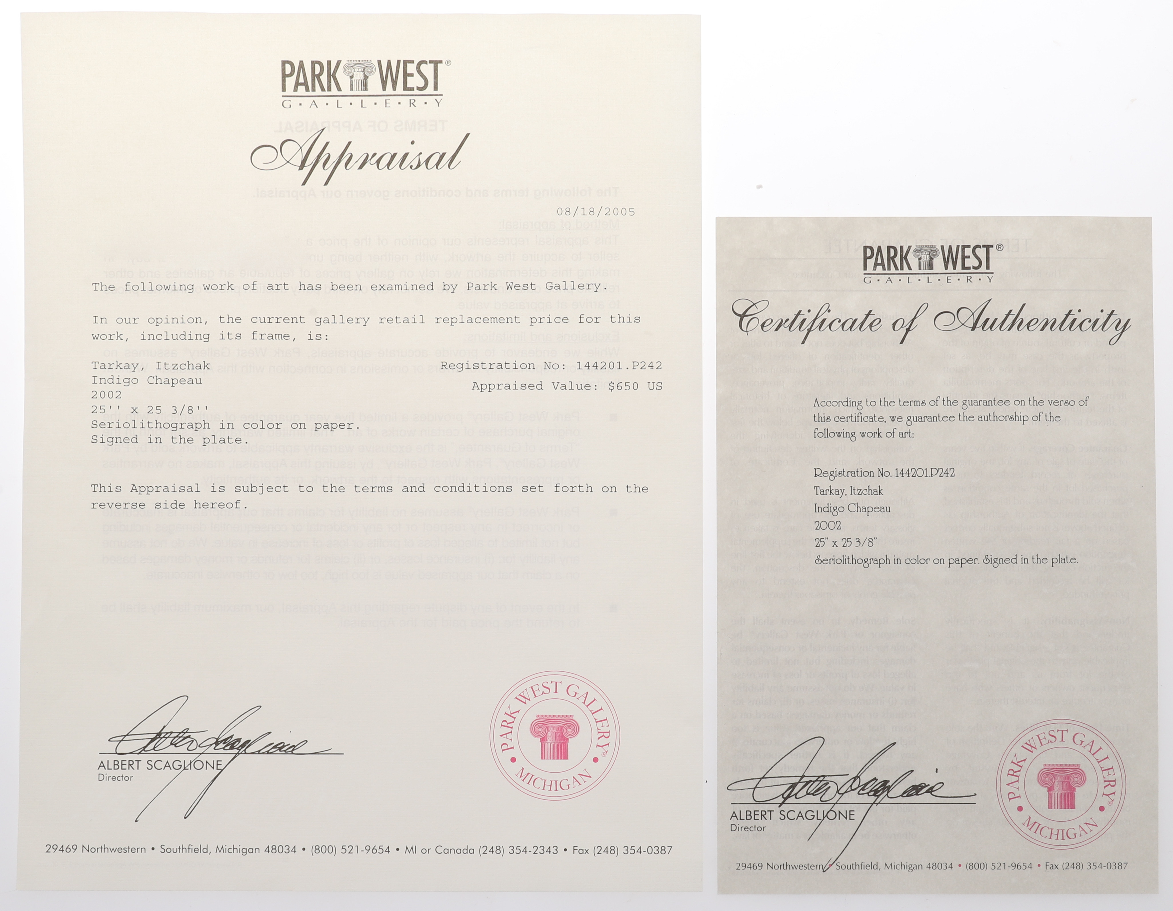 2314266. ITZCHAK TARKAY (1935-2012). INDIGO CHAPEAU.