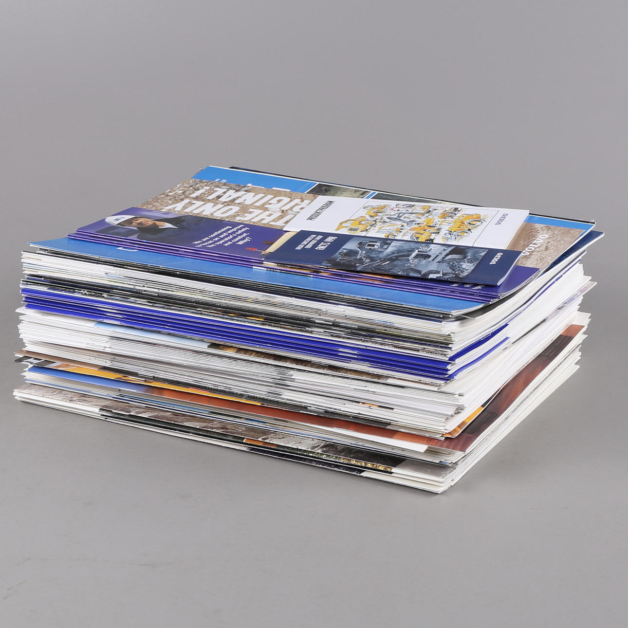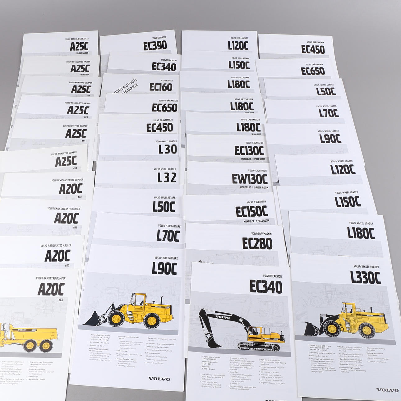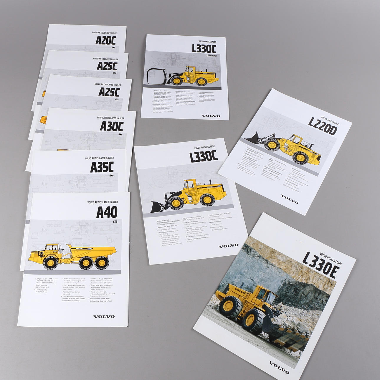 Erä Volvon automerkin esitteitä/kansioita/esitteitä kuorma-autoilla.